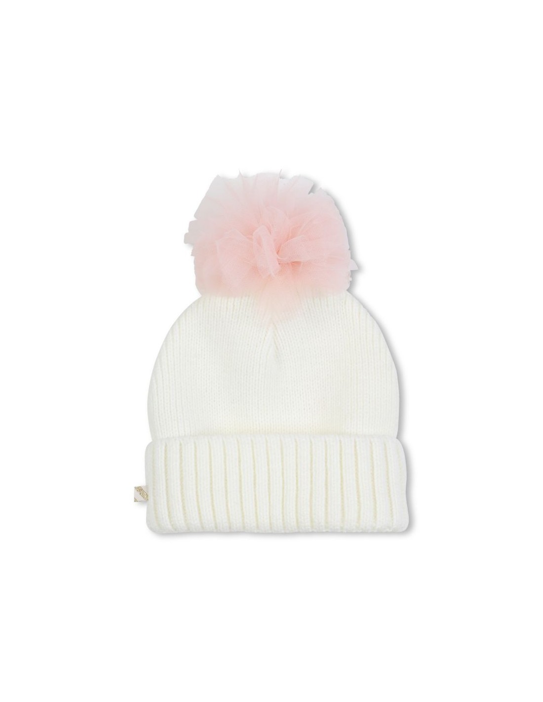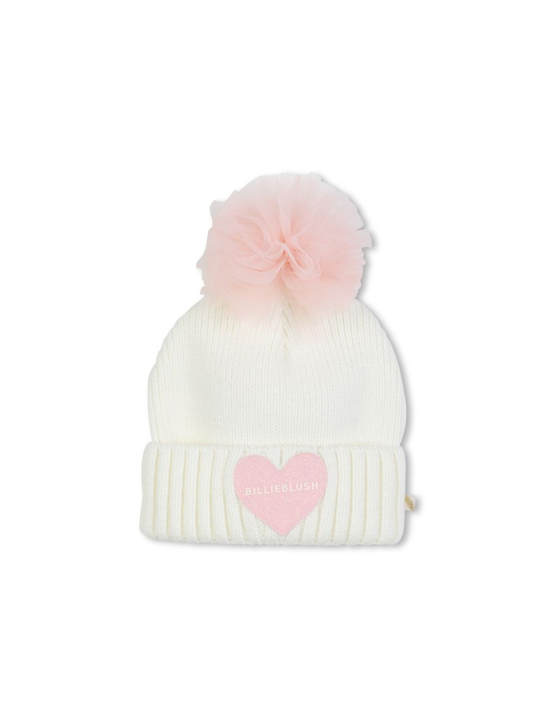 Este gorro de trico BILLIEBLUSH, adornado com um pompom de tule, é um acessório prático e fofo. O emblema em formato de coração com lantejoulas adiciona um toque brilhante e moderno. Uma escolha perfeita para manter a sua filha aquecida e estilosa.