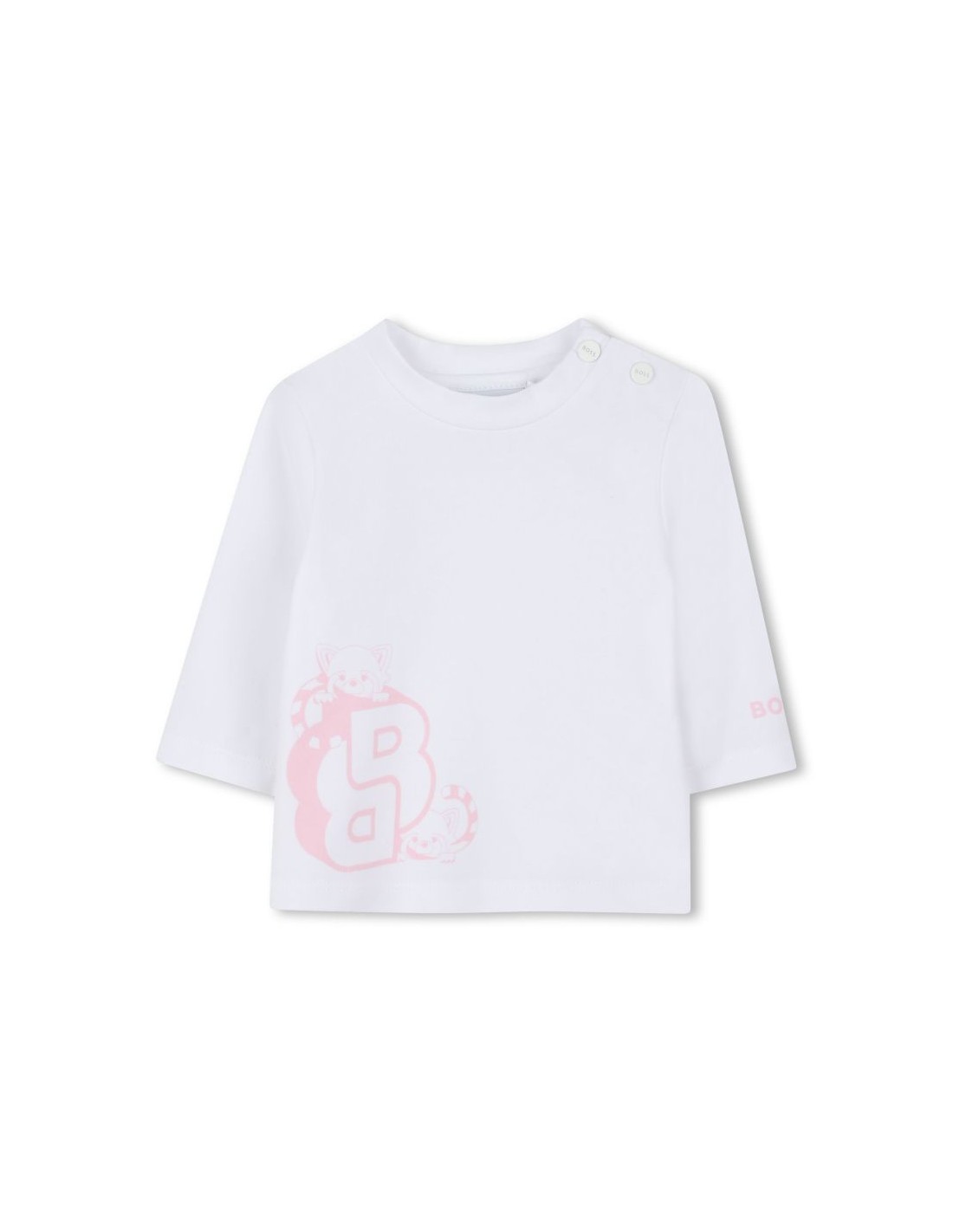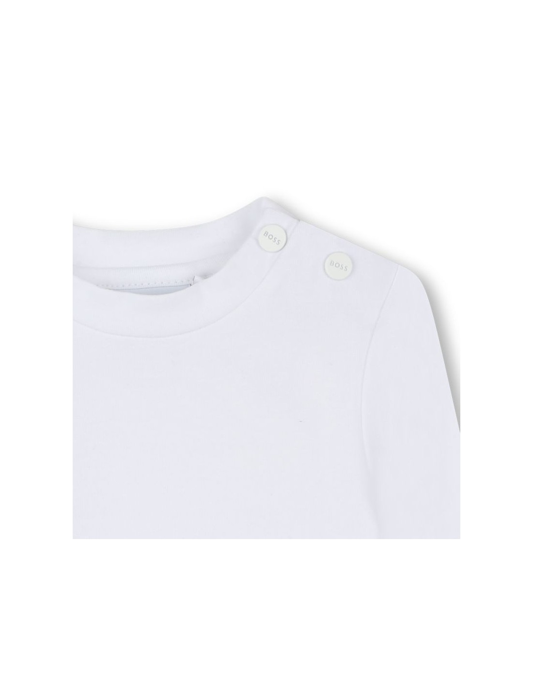 Esta sweatshirt BOSS impressiona pelo seu tecido macio, contém algodão orgânico e elastano para maior flexibilidade. Possui abertura com botão de pressão no ombro para facilitar na hora de vestir. Uma ilustração divertida dá vida à lateral.