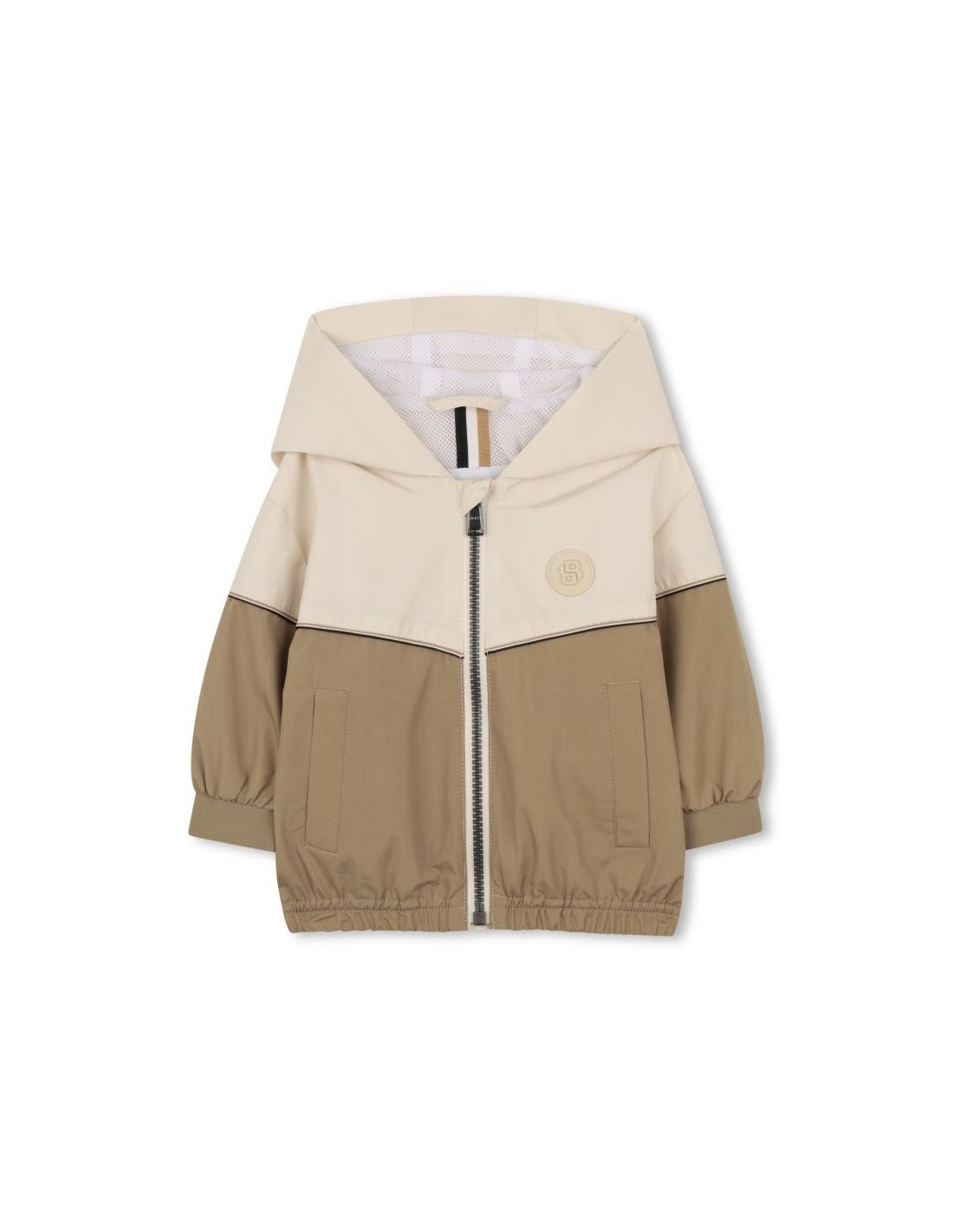 Ilumine o cotidiano dos seus pequenos aventureiros com este corta-vento com capuz da BOSS. Feito de pongee reciclado. O fecho e bolsos práticos garantem conforto e funcionalidade. Esta peça é ideal para passeios em todas as condições climáticas.