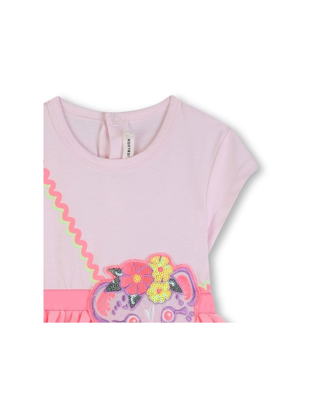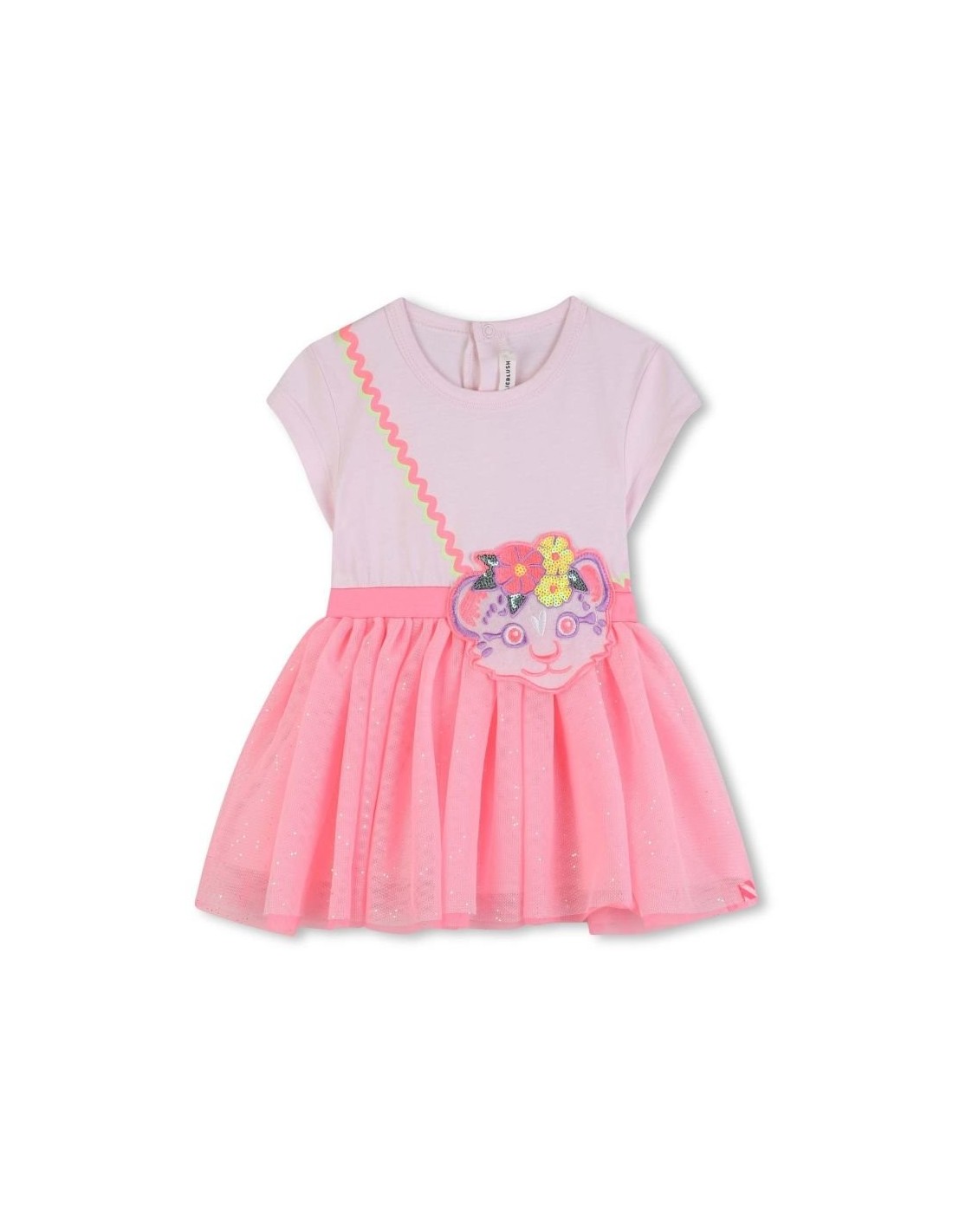 Este vestido BILLIEBLUSH bimaterial combina conforto e delicadeza. A bolsa bordada trompe l'oeil adiciona um toque divertido e original, enquanto a cintura elástica garante uma silhueta fluida e confortável de usar. Uma criação encantadora.