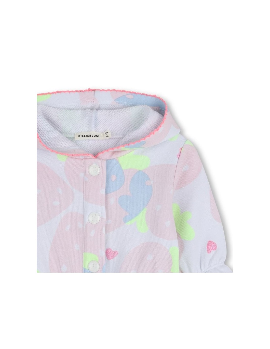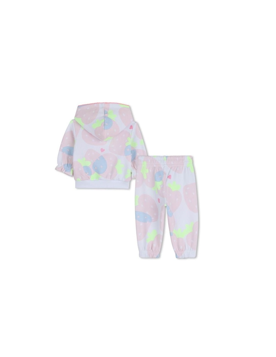 Este conjunto BILLIEBLUSH combina conforto e fantasia com a adorável estampa de morango. O cardigã com capuz tem punhos com babados e fecho de botão, enquanto as calças com cintura elásticas garantem perfeita liberdade de movimento.
