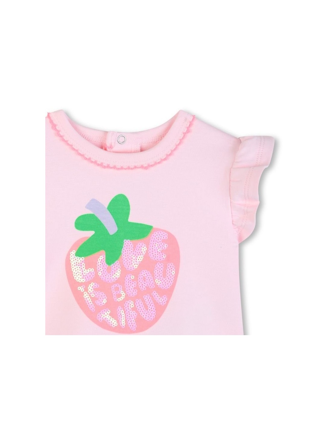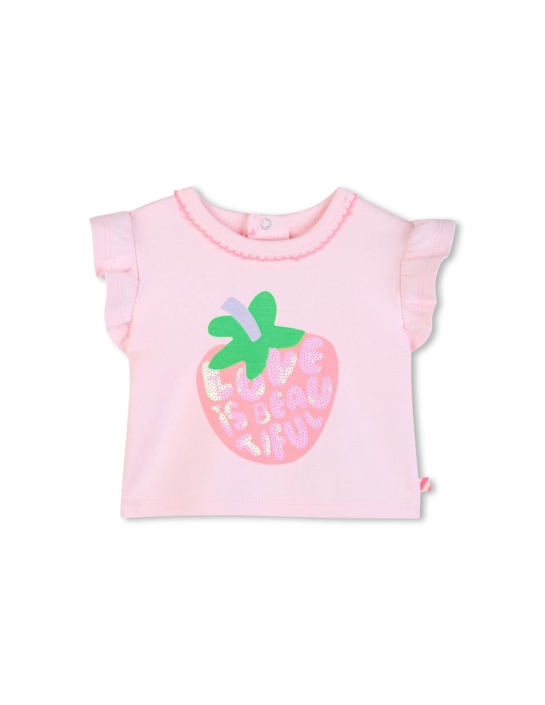 Esta t-shirt BILLIEBLUSH é feita de algodão cultivado organicamente, ultra-macio. A manga curta com babados trazem um charme divertido, enquanto a ilustração na frente desperta a imaginação. . O fecho de pressão na parte de trás facilita a colocação.