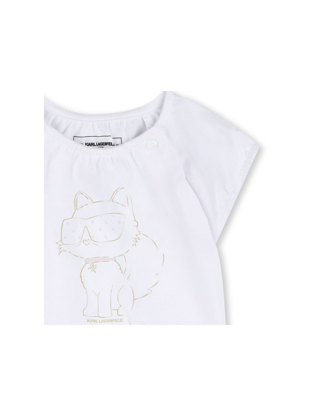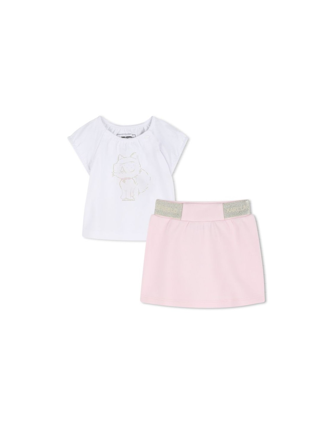 Estimule a criatividade do seu bebé com este conjunto KARL LAGERFELD KIDS. A t-shirt é feita de algodão orgânico, com fecho de pressão no ombro para facilitar o vestir. Com ilustração CHOUPETTE, traz um toque divertido. A saia, feita de malha.