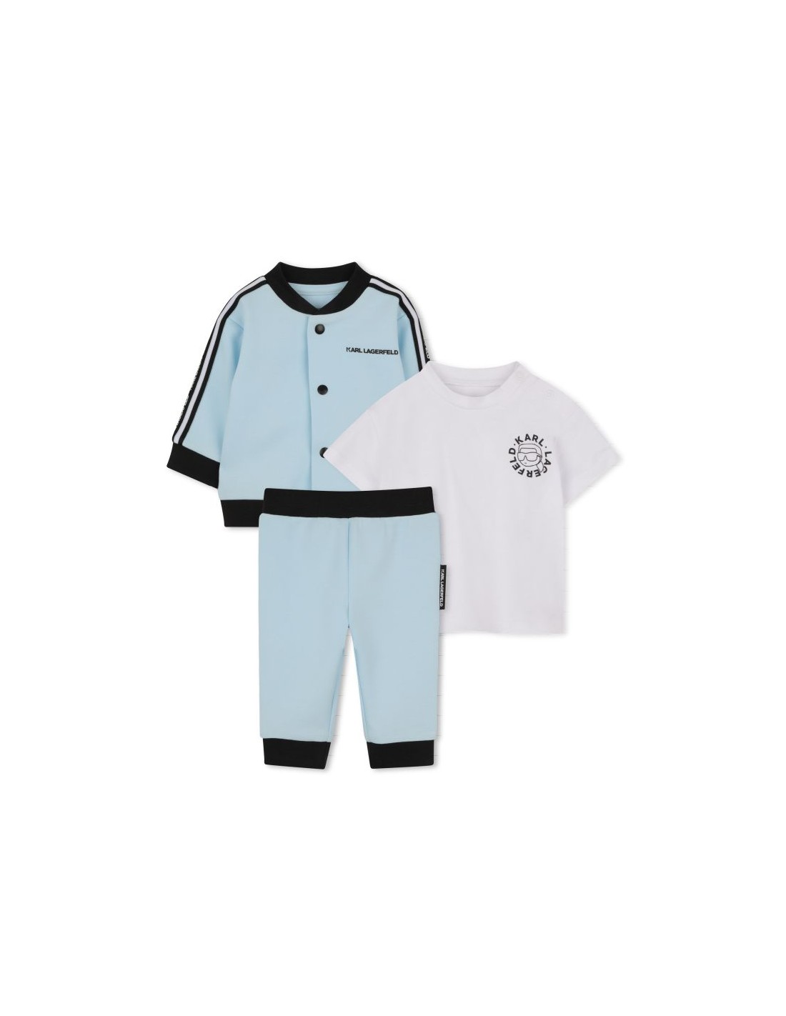 Descubra este conjunto três peças KARL LAGERFELD KIDS, uma harmonia perfeita entre estilo e conforto. O cardigã aconchegante abre facilmente com botões , enquanto a t-shirt feita de algodão organico traz um toque desuavidade. Um must para o armário.