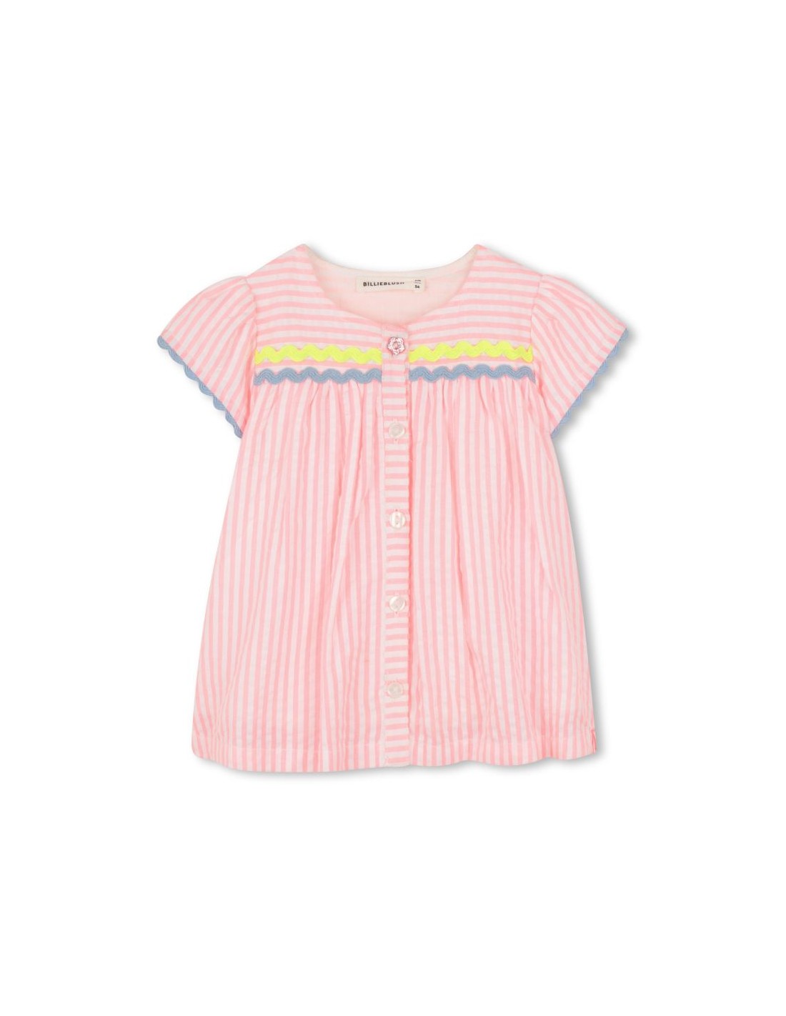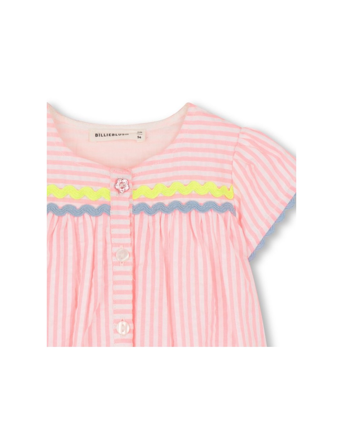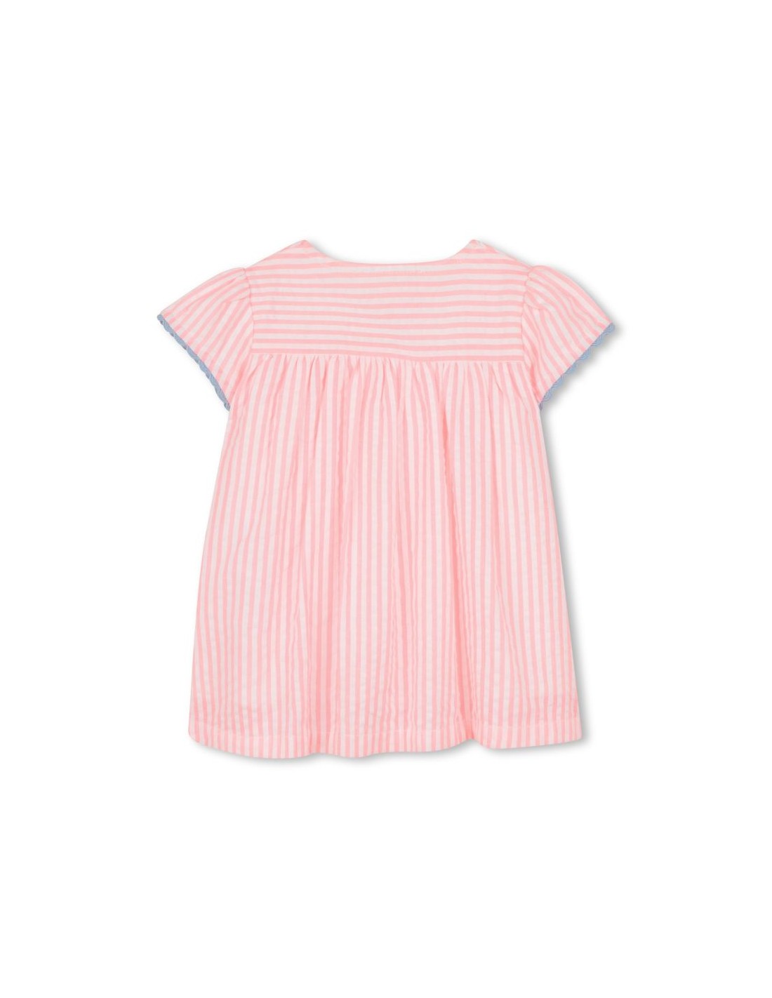Este vestido listado BILLIEBLUSH combina leveza e fantasia. As mangas e o viés colorido no topo, dão um toque original, enquanto o fecho de botões atrás facilita a colocação. Um modelo fresco, perfeito para dias ensolarados.
