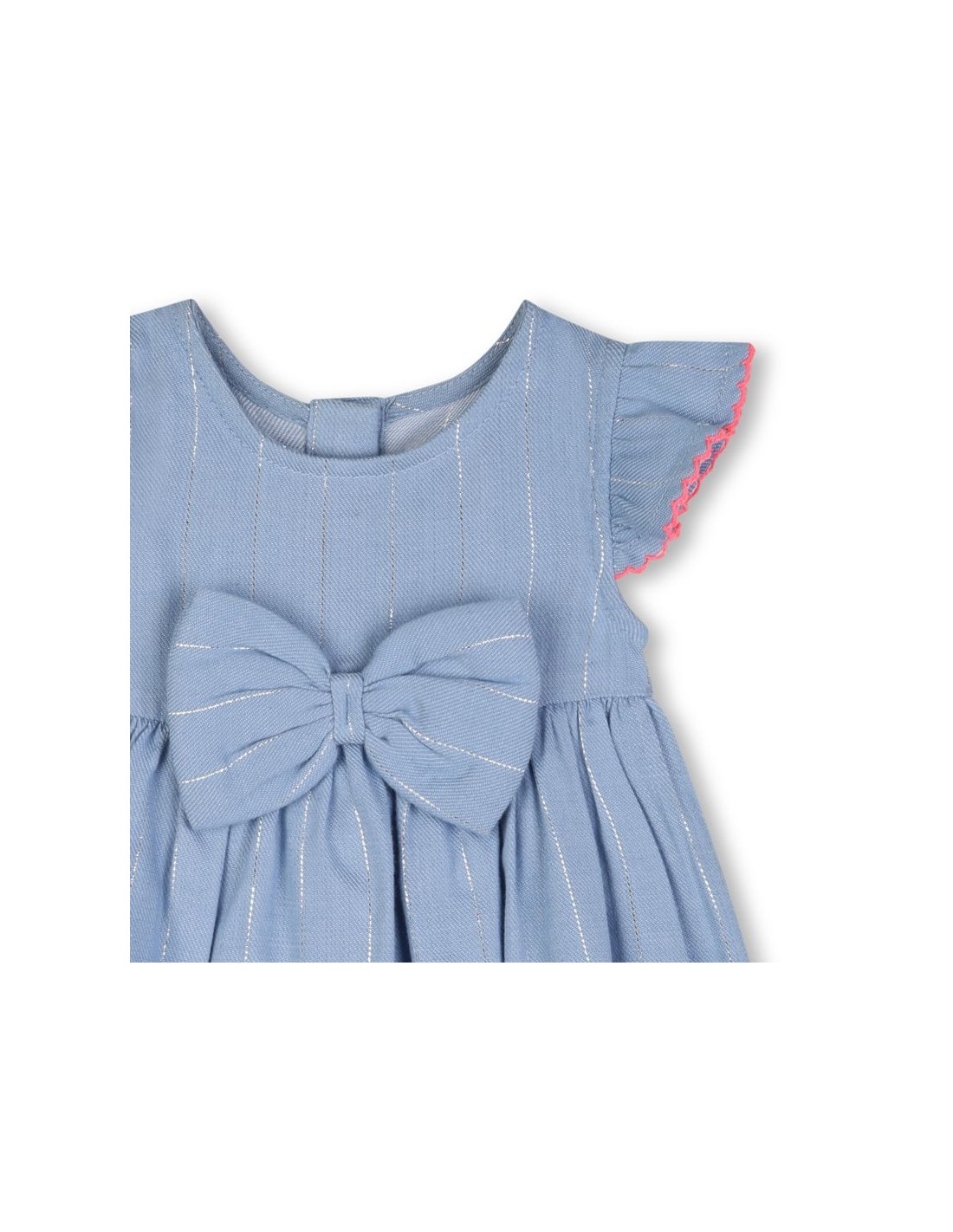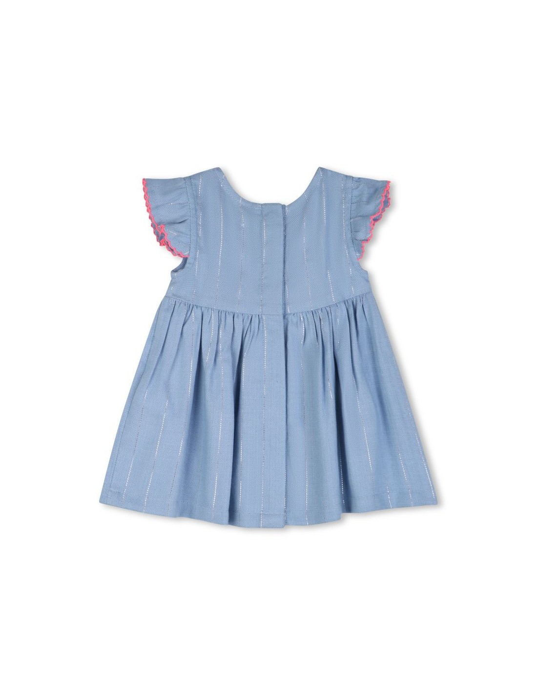 Uma explosão de luz veste este vestido BILLIEBLUSH de algodão sutilmente iridescente. As mangas com folhos e o laço na frente dão um toque de charme e leveza. Fácil de vestir graças ao fecho traseiro, combina conforto e elegância.