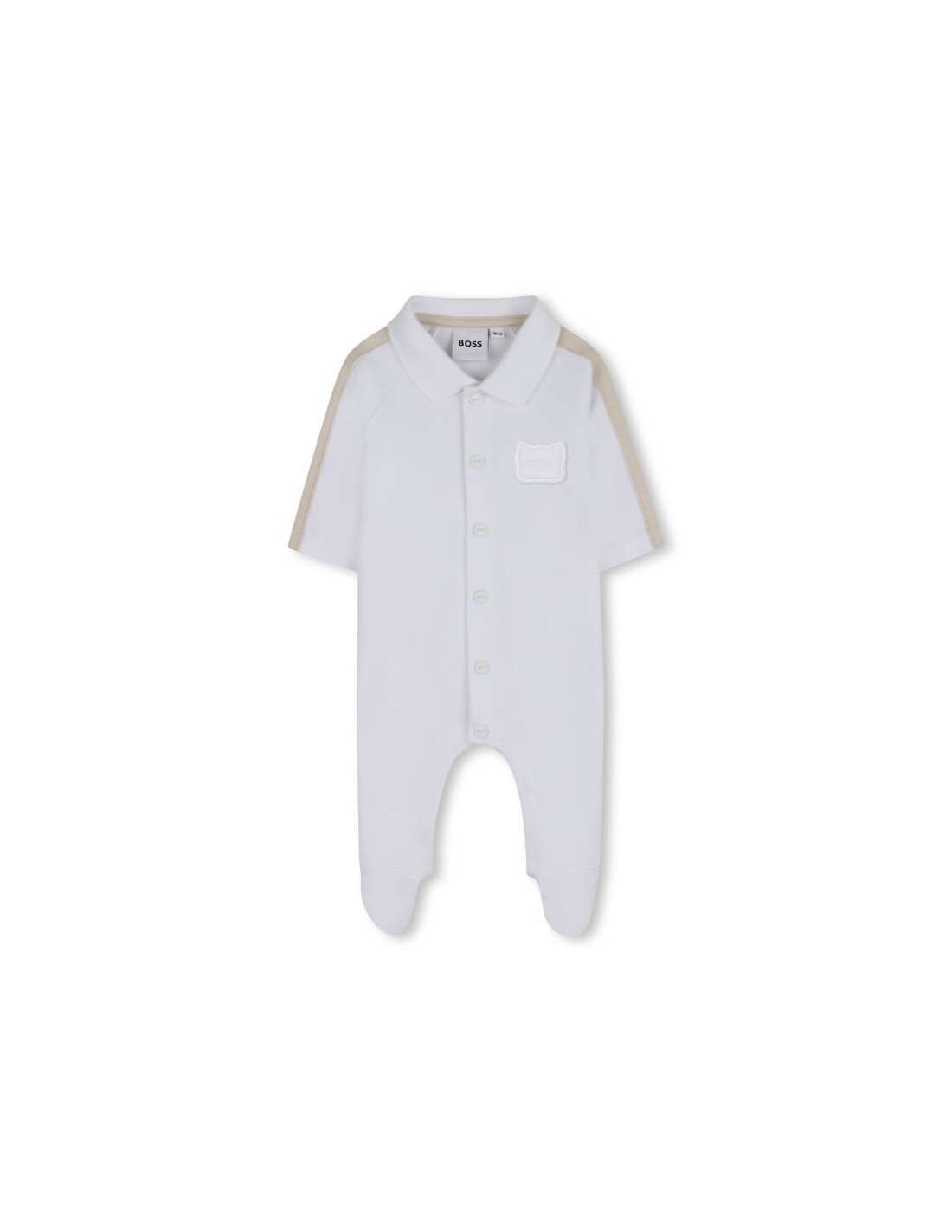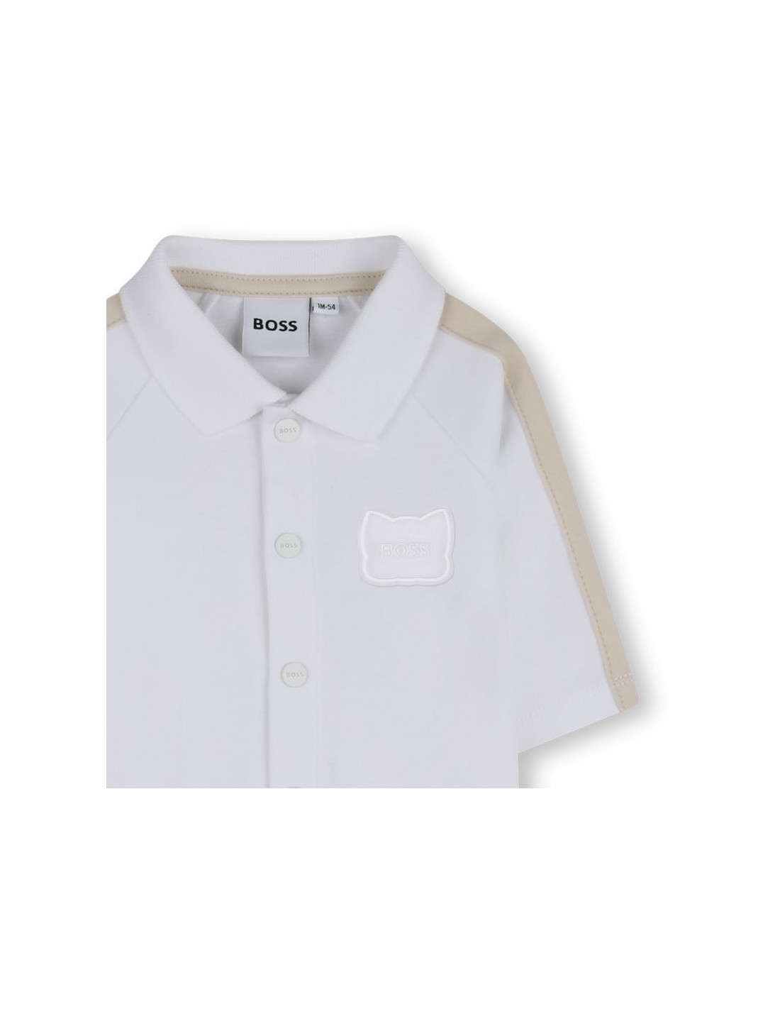 Adote um estilo divertido e prático com este babygrow de algodão orgânico BOSS. A gola polo elegante e os recortes nas mangas adicionam um toque de elegância, garantindo o conforto do seu pequeno aventureiro. O fecho na frente facilita o vestir.