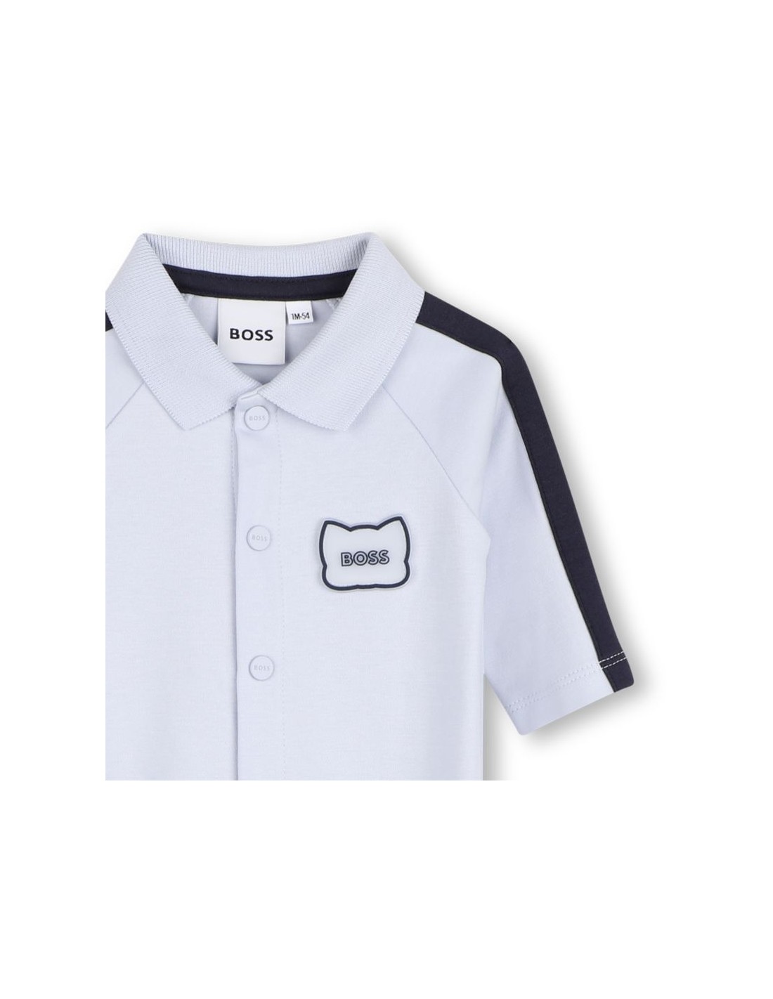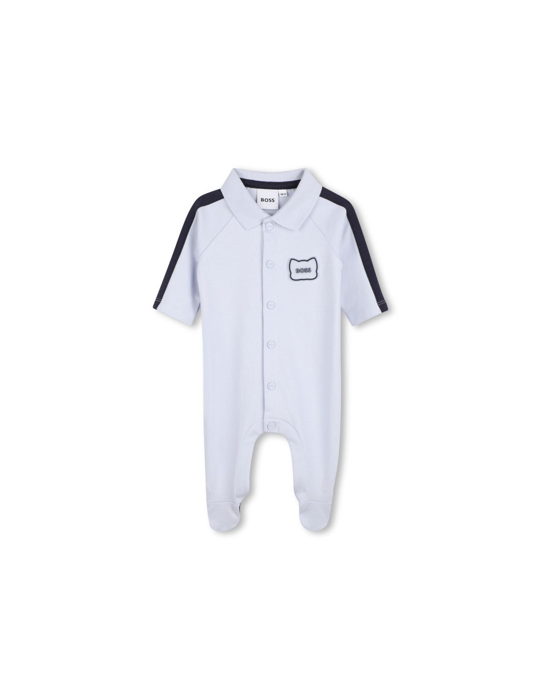 Adote um estilo divertido e prático com este babygrow de algodão orgânico BOSS. A gola polo elegante e os recortes nas mangas adicionam um toque de elegância, garantindo o conforto do seu pequeno aventureiro. O fecho na frente facilita o vestir.
