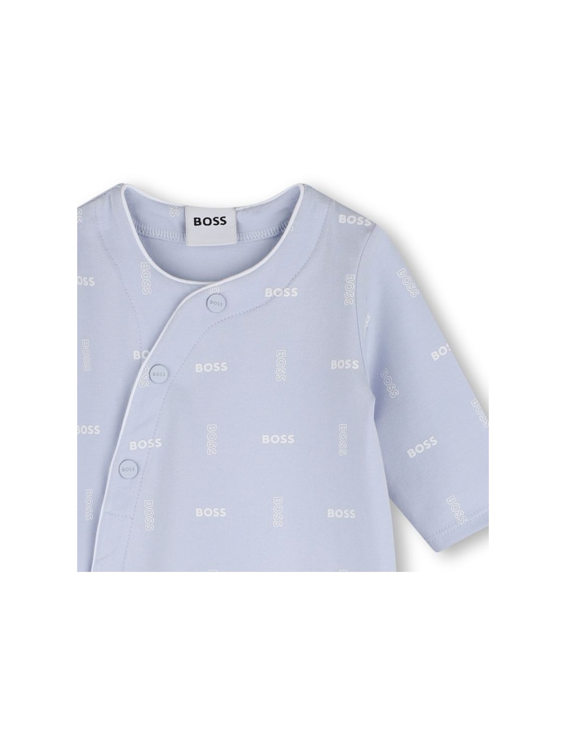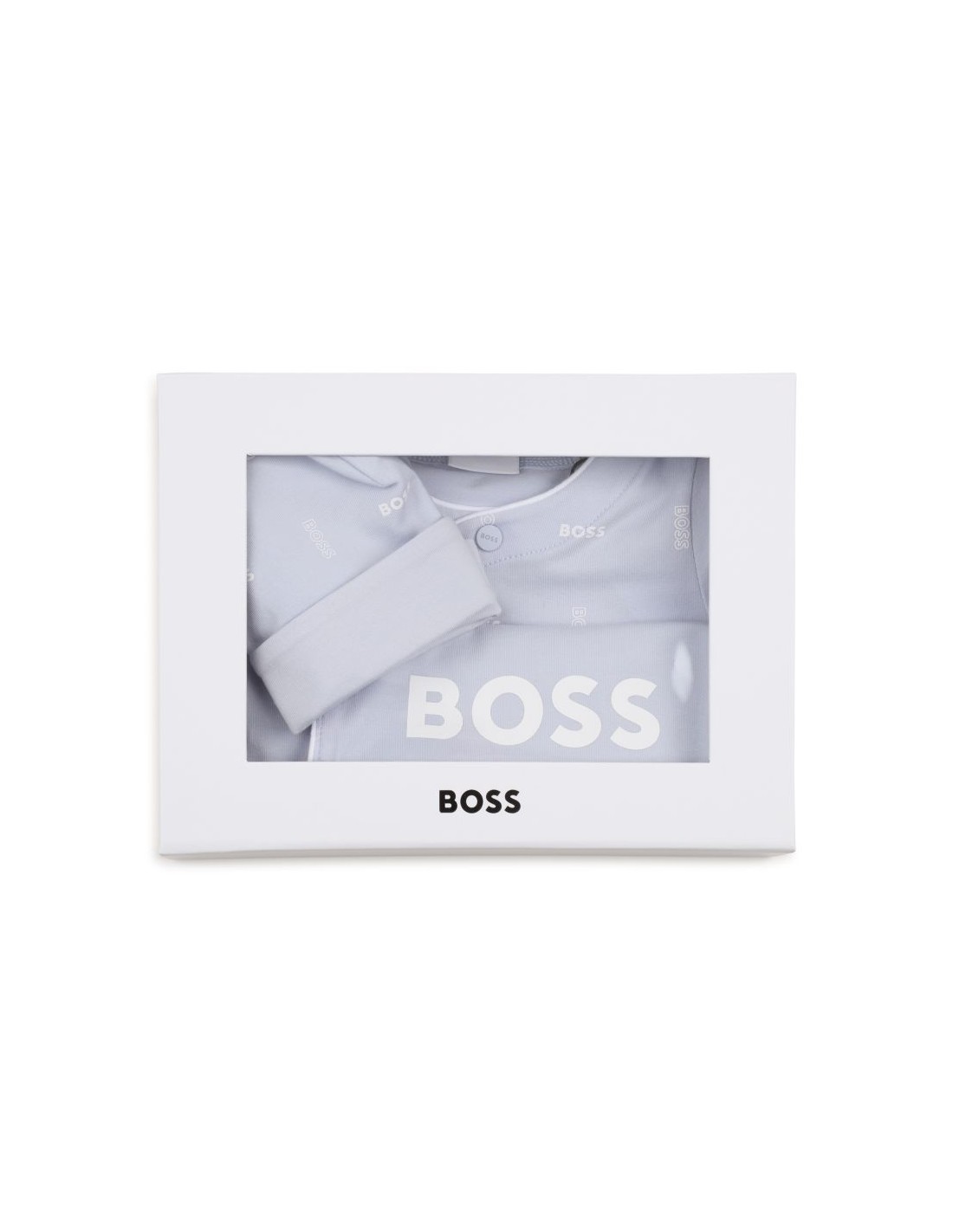 Desperte o estilo do seu bebé com este conjunto BOSS. Composto por babygrow de algodão estampado e um gorro reversível, combina conforto e elegância. O babete, com logo, adiciona um toque divertido sem deixar de ser prático. Vendido em caixa.