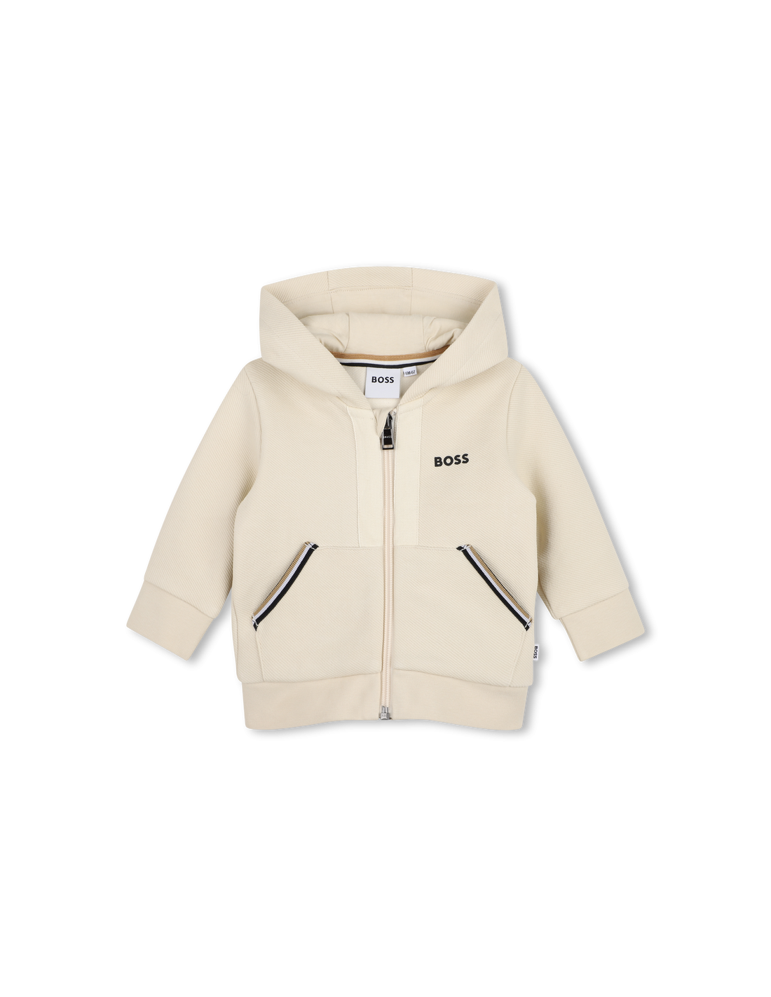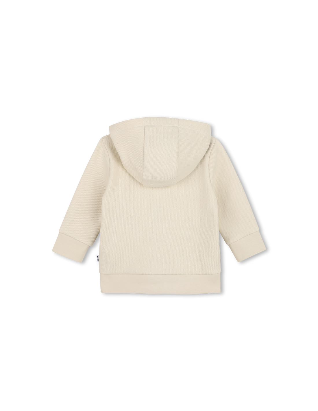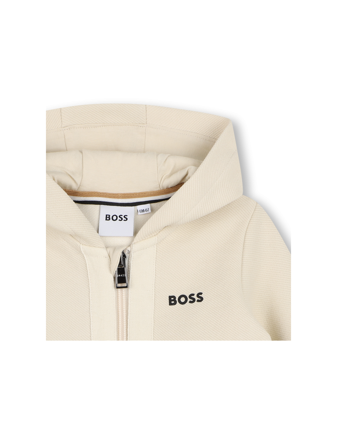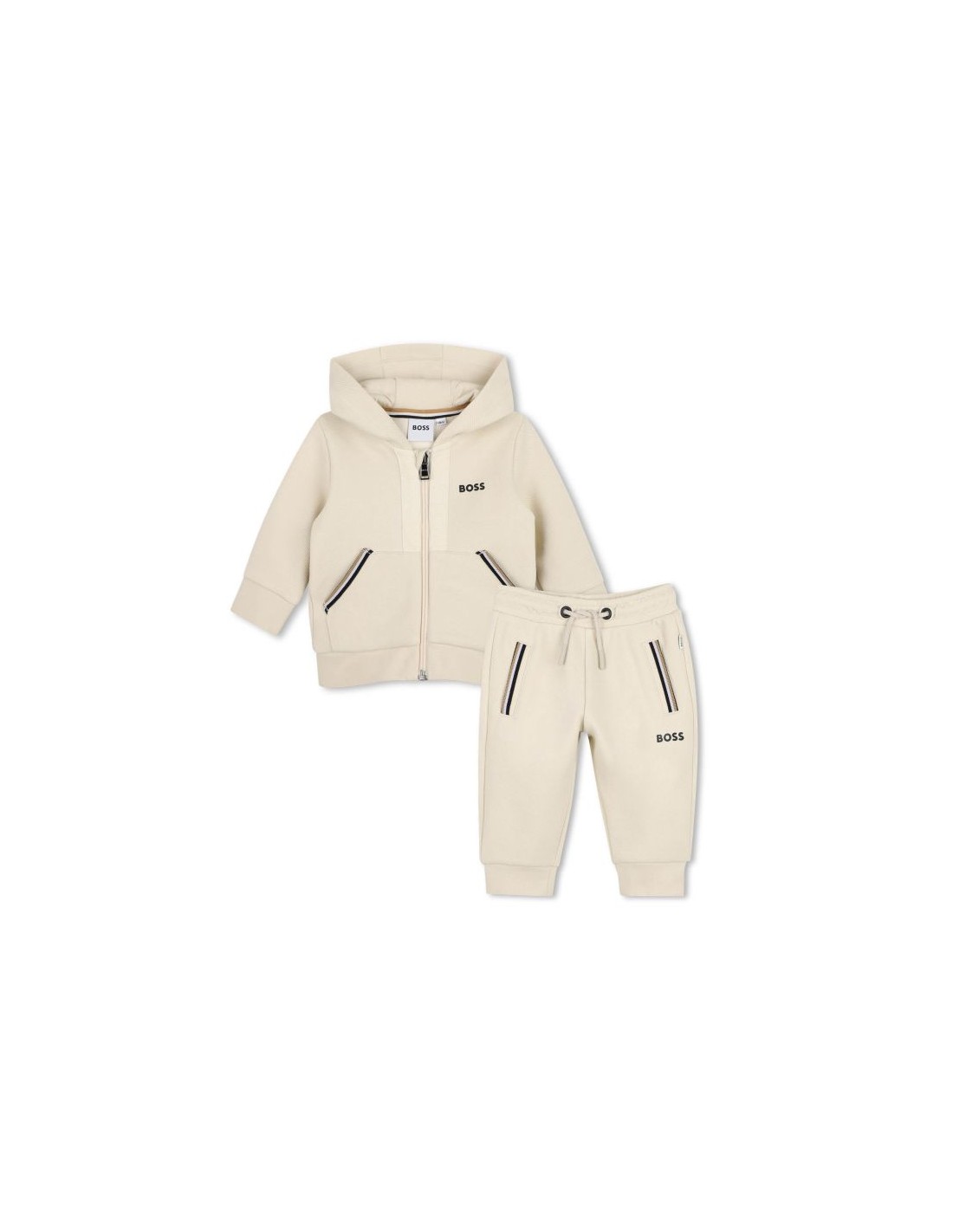 Sussurre no ouvido do seu pequeno aventureiro que o conforto é rei com este conjunto BOSS! O cardigã com capuz combina harmoniosamente com a calça de moletom, garantindo suavidade e flexibilidade a cada movimento.