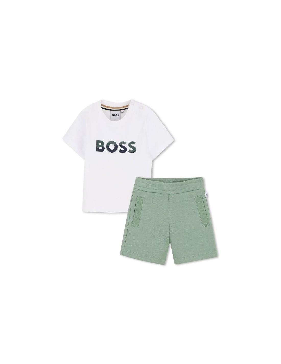 Brilhe com este irresistível conjunto BOSS para pequenos aventureiros! Com uma t-shirt de algodão macia com o logo estiloso no coração e calçoes, este conjunto combina conforto e estilo. Bolsos práticos adicionam um toque funcional.