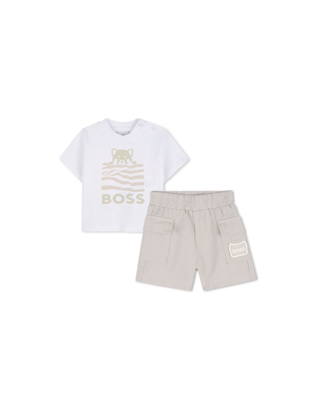 Deixe-se seduzir por este conjunto de t-dhirt e calçoes BOSS, uma dupla que é encantadora e confortável. Este conjunto é a escolha perfeita para todos os dias.