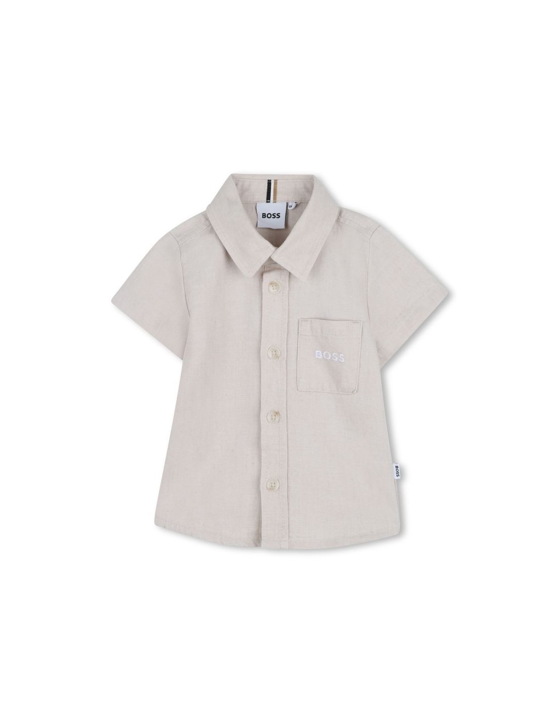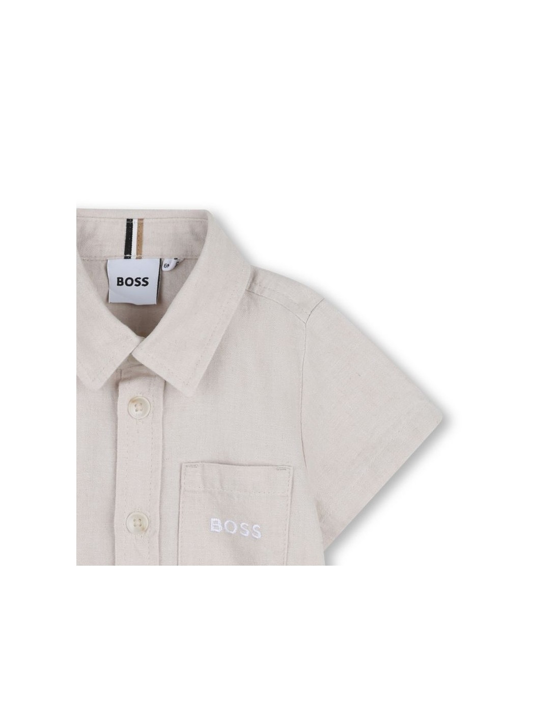 Deixe-se seduzir pela elegância casual desta camisa de linho de manga curta BOSS. A textura leve é ideal para dias ensolarados. Com fecho de botão e bolso patch adornado com logo, combina conforto e estilo. Perfeita para brincadeiras.