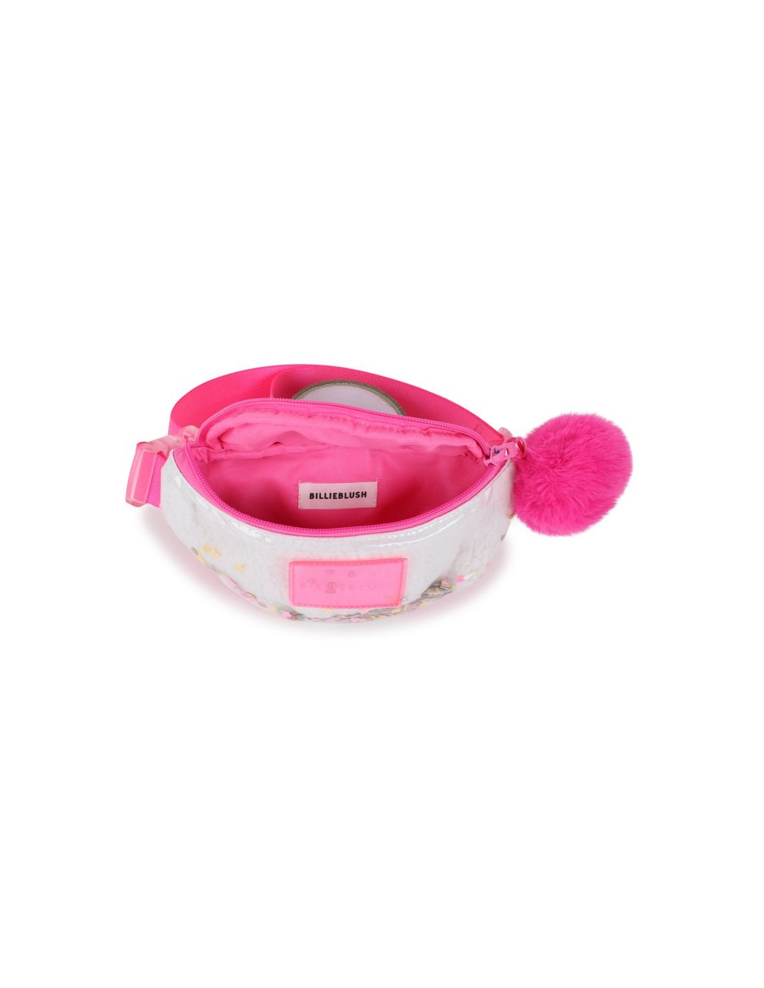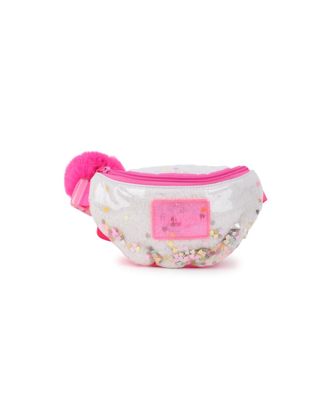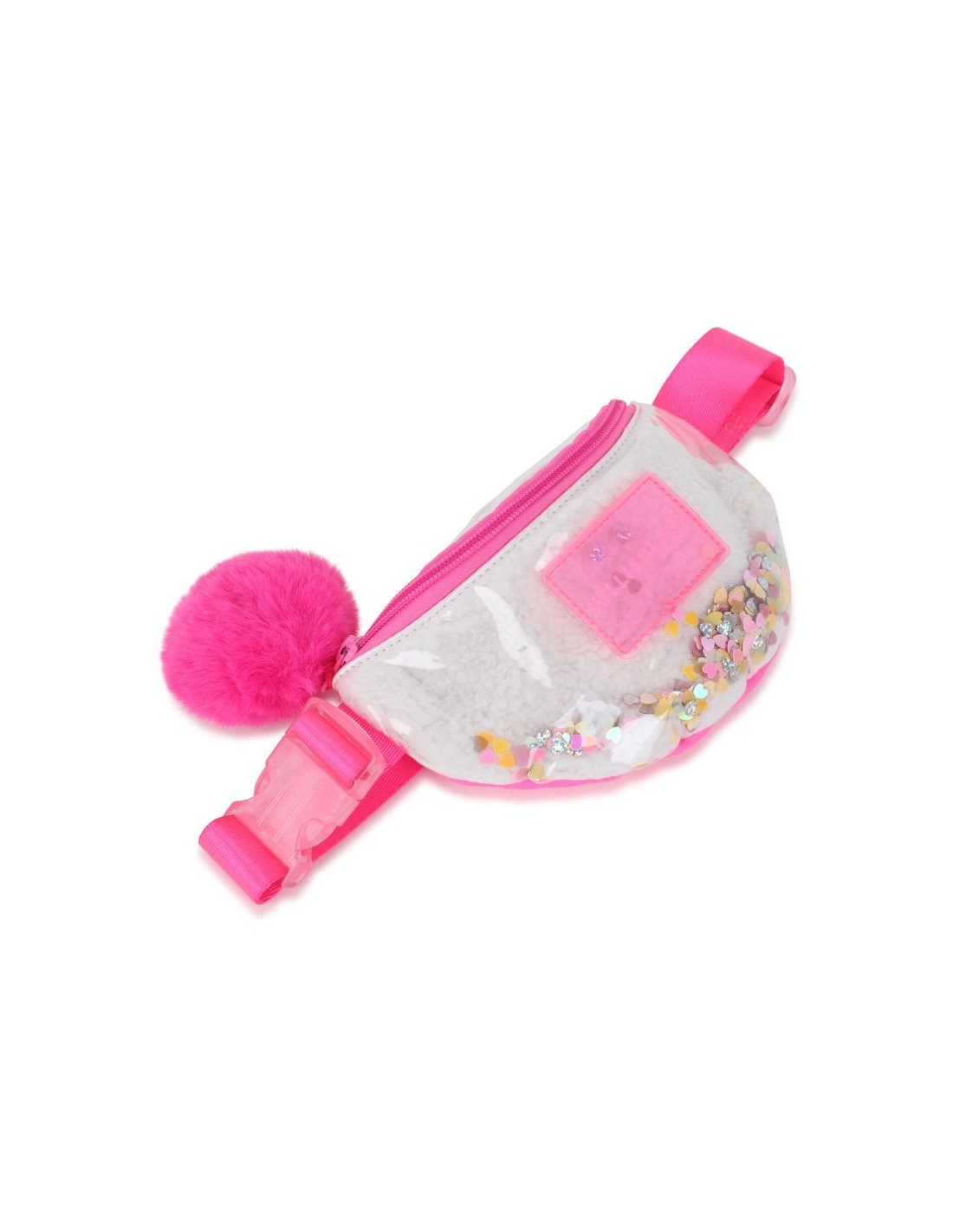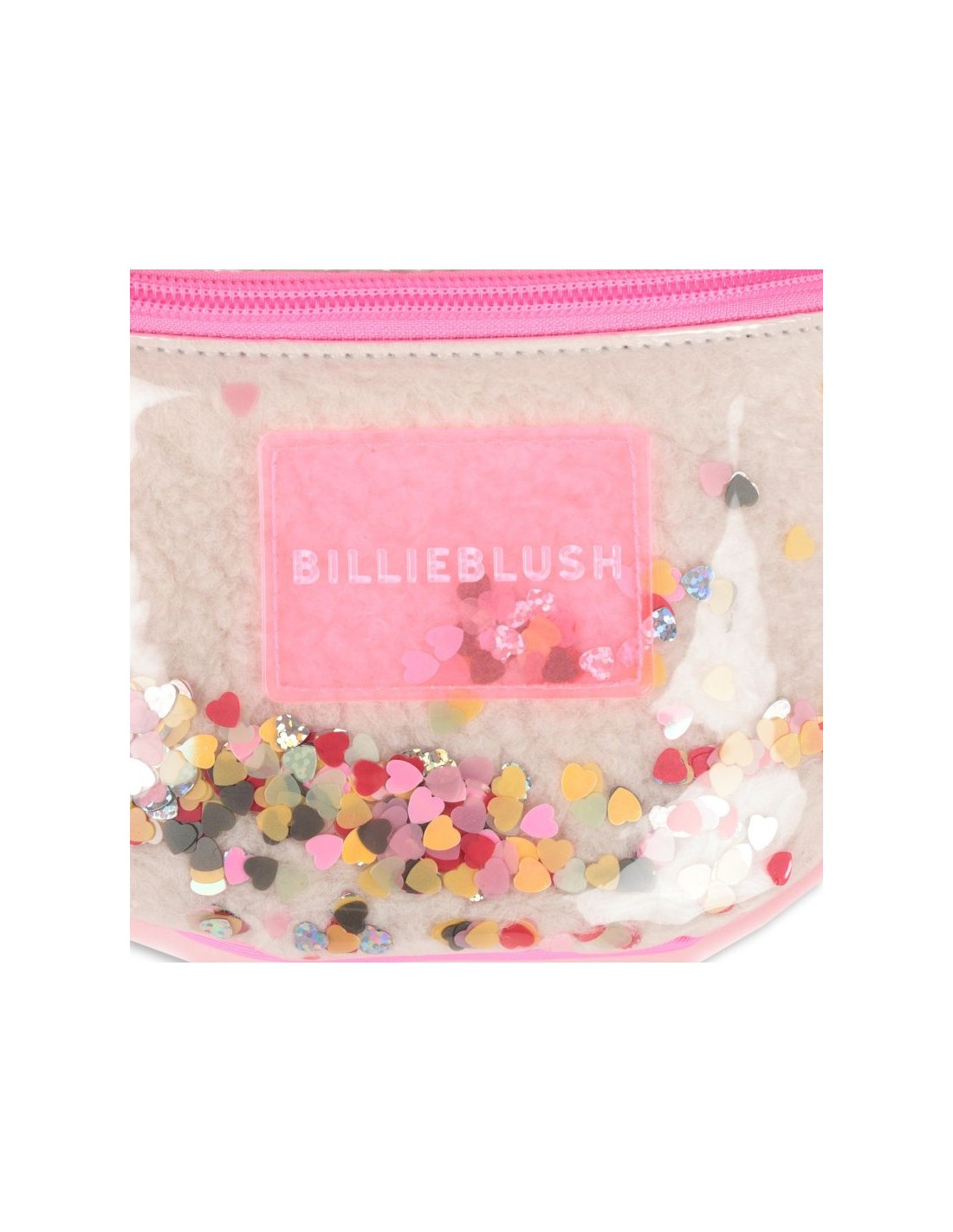 Com o seu pelo fofo coberto com cloreto de polivinilo transparente e o coração com glitter no interior, esta pochete BILLIEBLUSH é um verdadeiro acessório de glitter. O pompom polar e o emblema BILLIEBLUSH dão um toque lúdico.