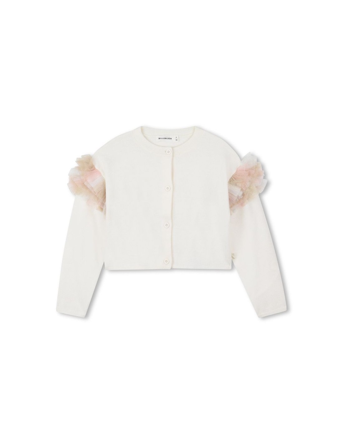Este cardigan de malha BILLIEBLUSH é um modelo delicado e elegante, perfeito para dar um toque de charme a qualquer look. Os botões conferem-lhe um corte elegante, e os folhos nos ombros acrescentam um detalhe refinado. Ideal para ocasioes especiais