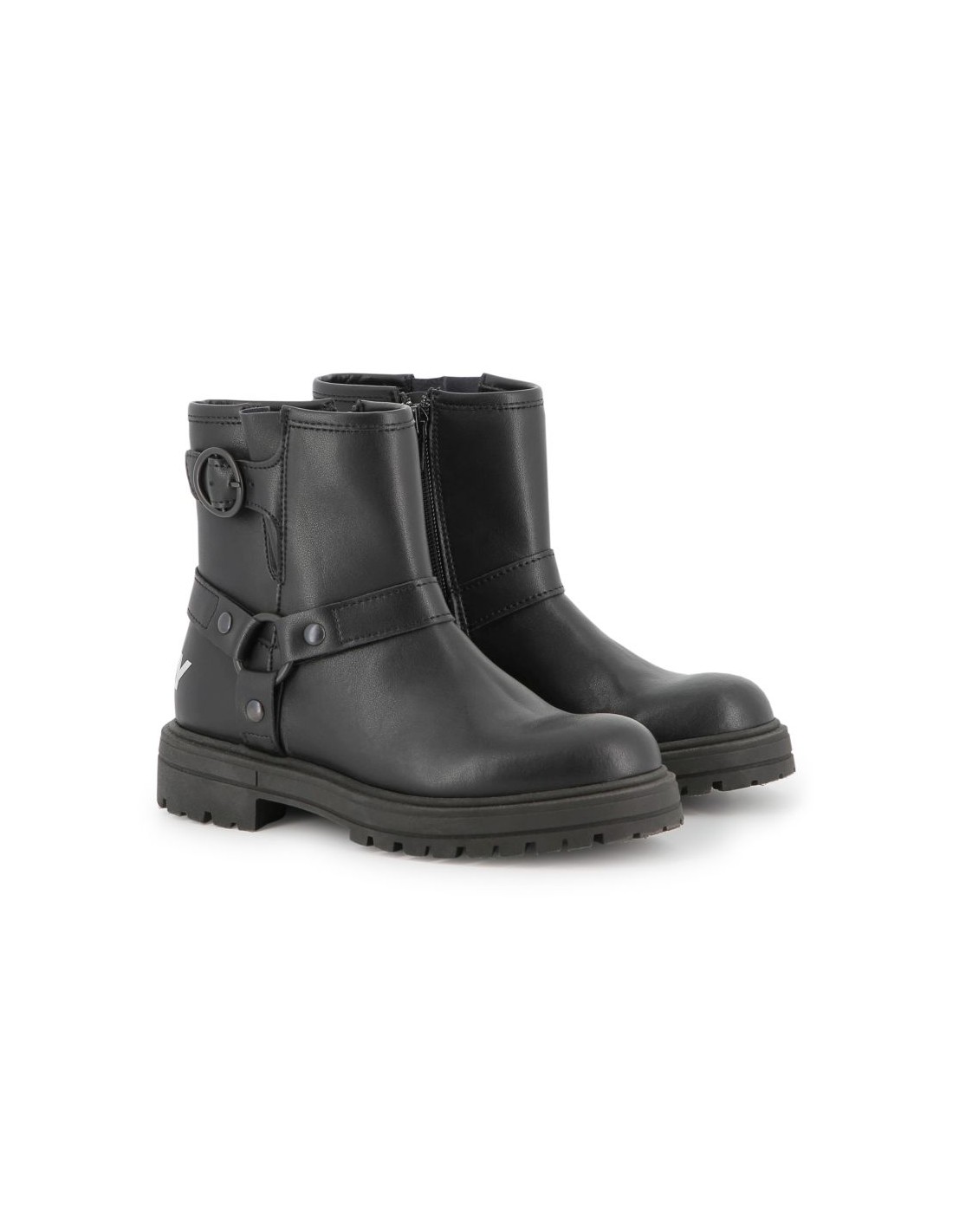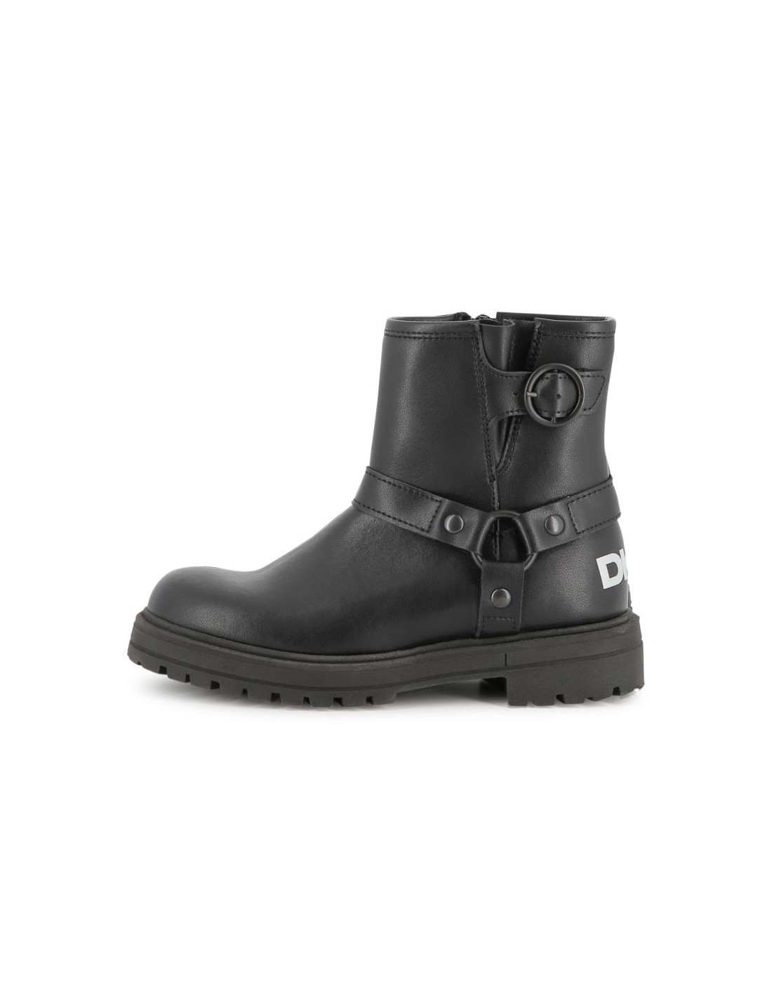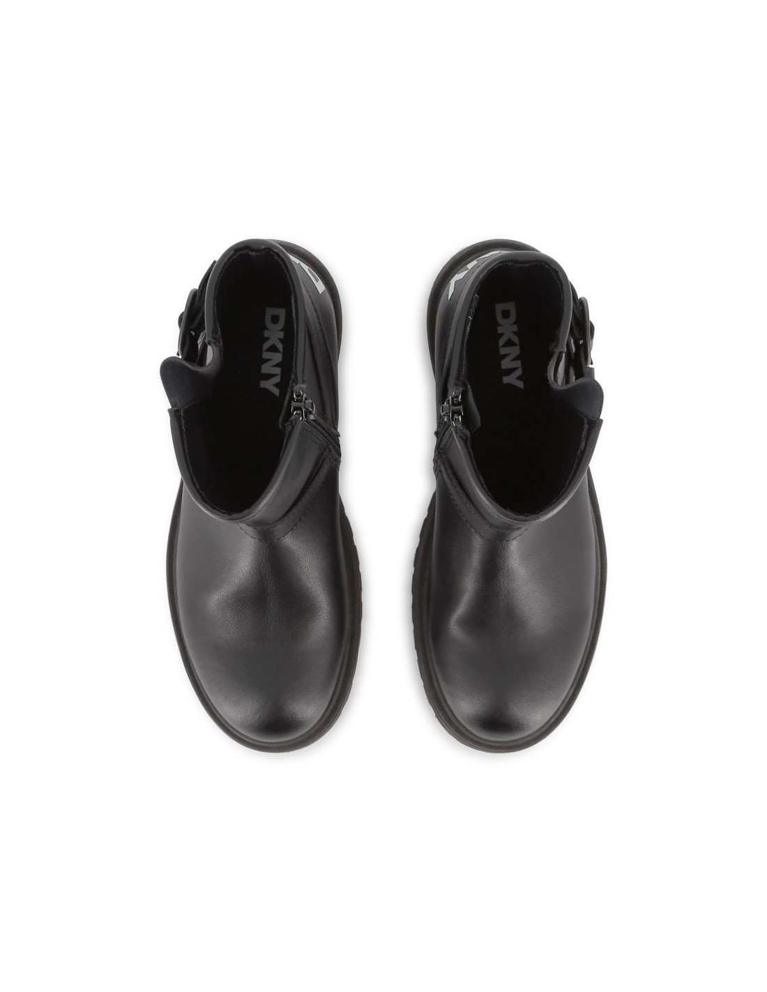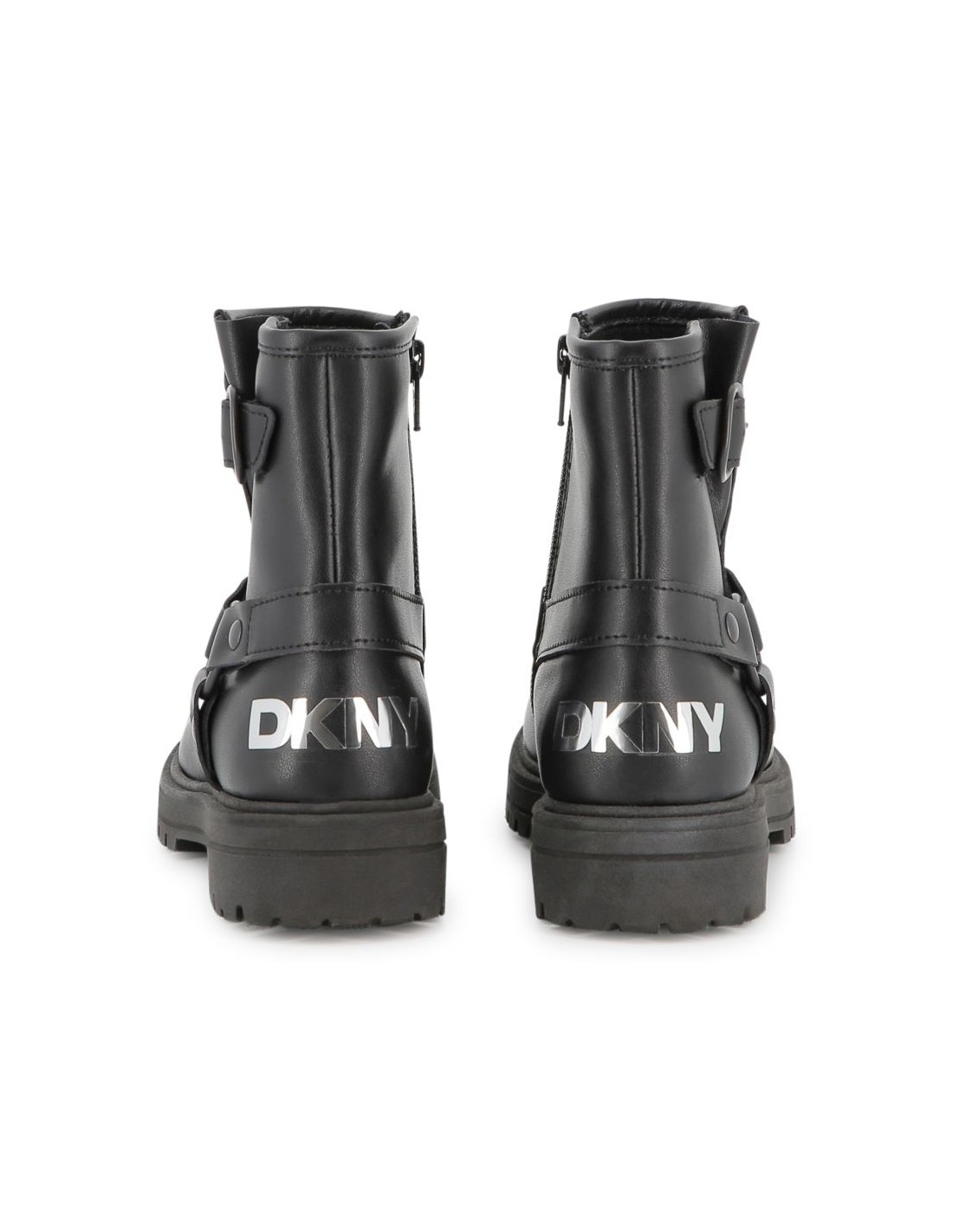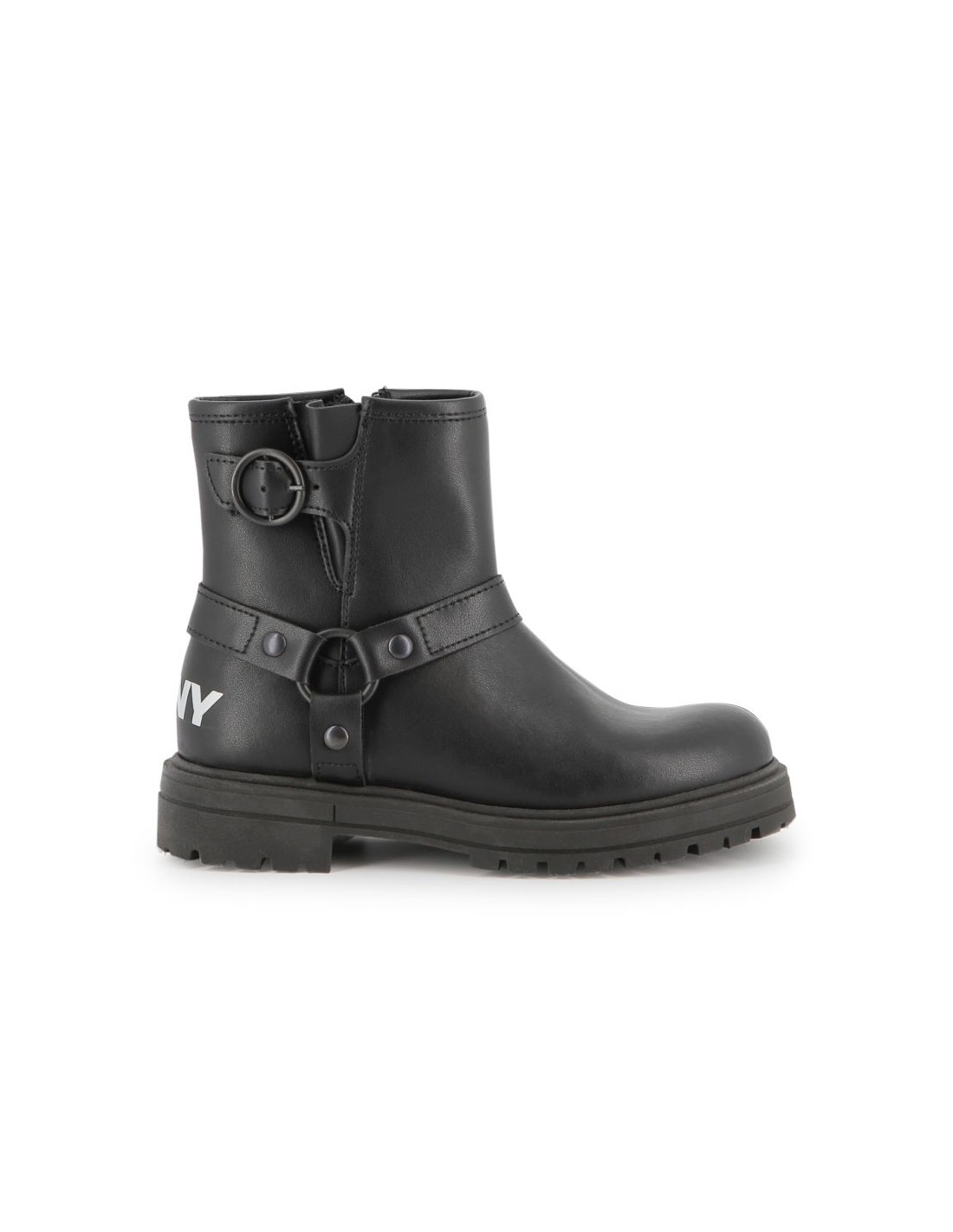 Esta bota de motociclista DKNY é um must-have para um visual ousado e chique. Feito de couro bovino, possui uma fivela na parte superior e um anel com tiras na parte externa para um toque rock. Forrado com microfibra, garante conforto e estilo.