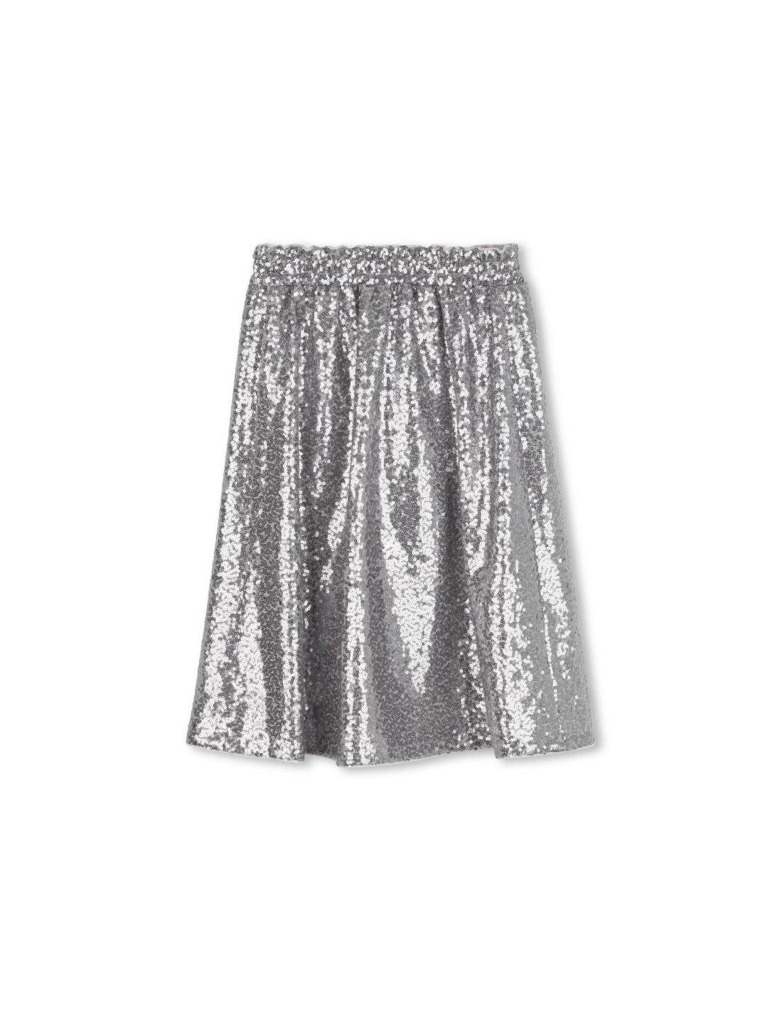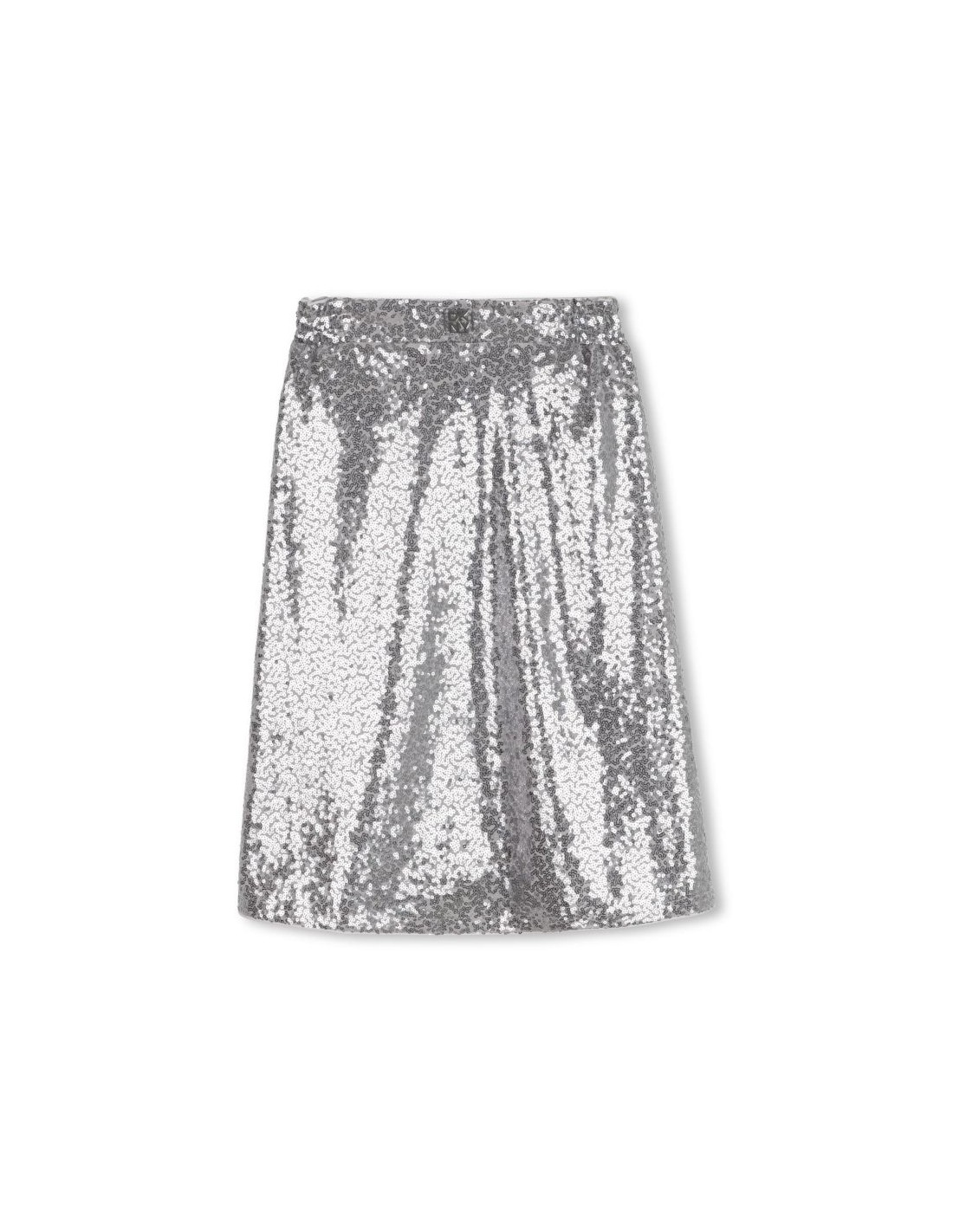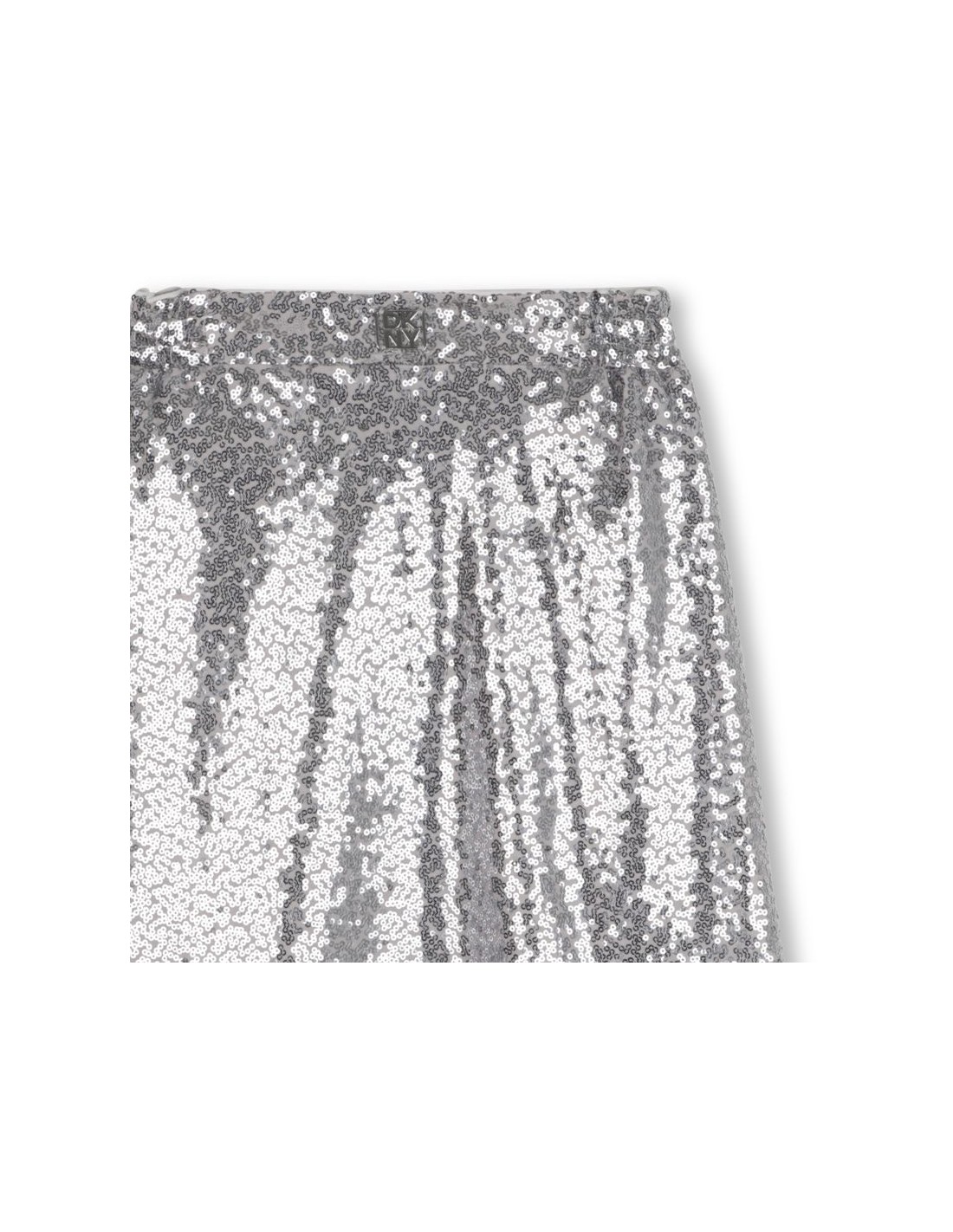 Esta saia midi, inspirada na coleção adulta da DKNY, é uma verdadeira peça de estilo. Confeccionada em tule adornado com lantejoulas prateadas, brilha com mil luzes. O forro em poliéster e cós elástico garantem conforto e fluidez.
