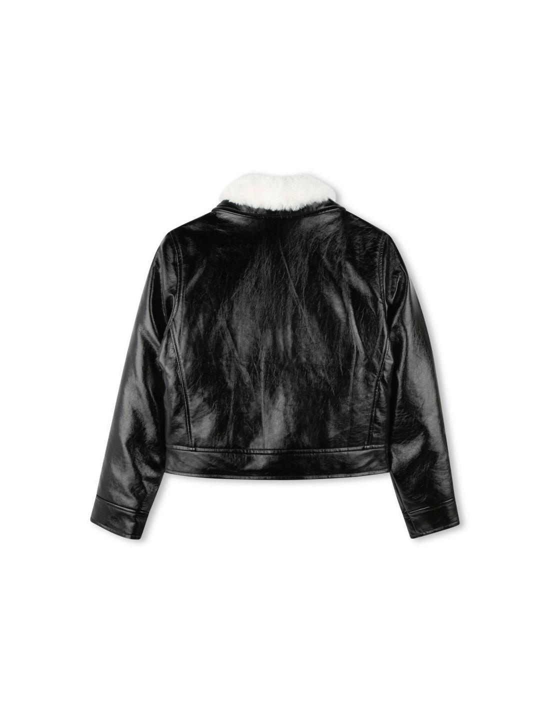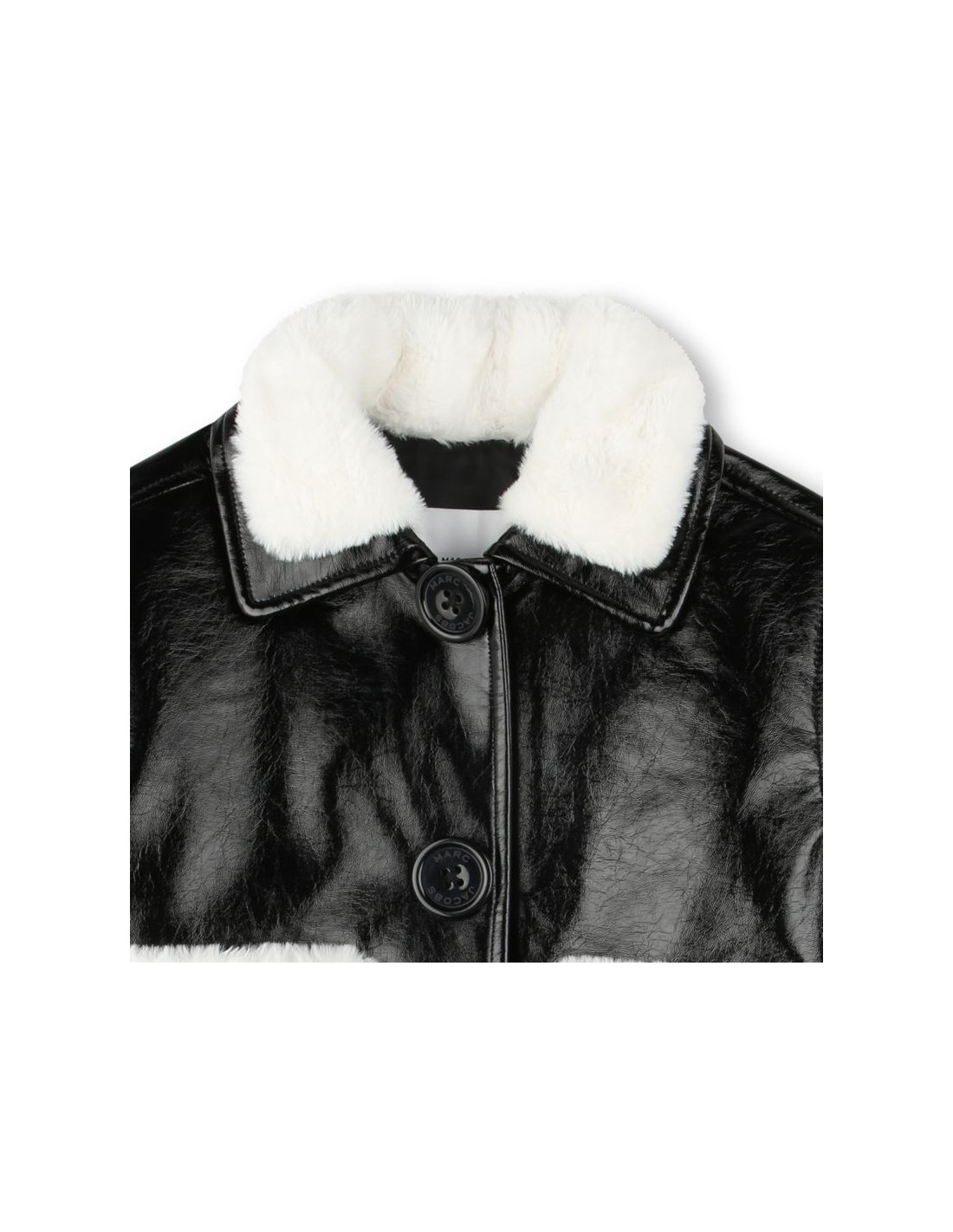 Este blusao MARC JACOBS é feito de verniz sintético para um visual moderno e brilhante. A gola e os bolsos acolchoados dao um toque de conforto e textura, enquanto a etiqueta da marca nas costas e o fecho com botões de pressão dao um ar elegante.