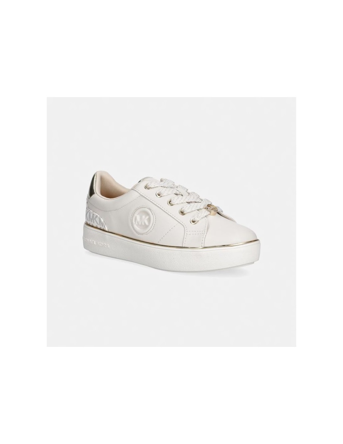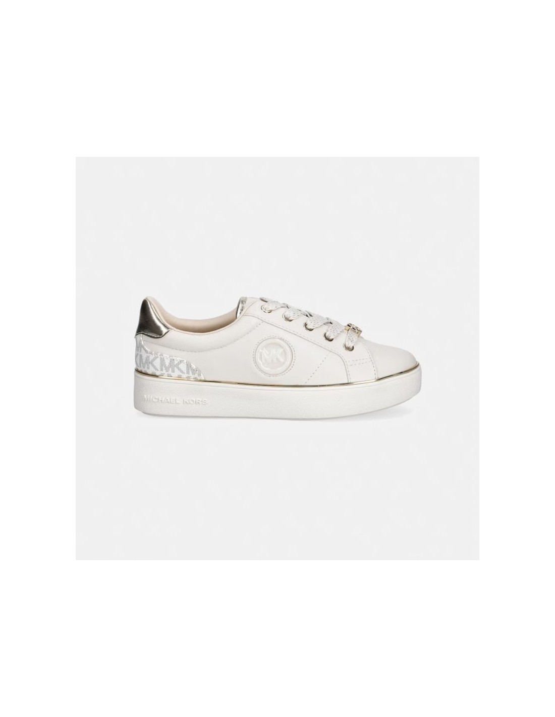 Estes ténis Michael Kors são uma opção de calçado infantil que combina design minimalista com conforto. Este modelo bege completa perfeitamente o estilo urbano, enfatizando um toque jovial. O contraforte rígido do calcanhar estabiliza o pé.