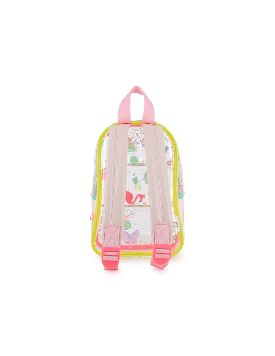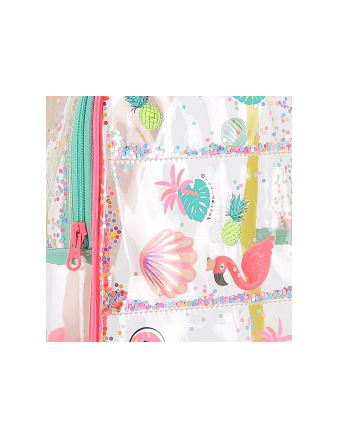 Mochila, projetada para aventureiras: material transparente e tecido brilhante, confetis e crachás presos sob a superfície, e ilustrações impressas que contam histórias. Alças de ombro acolchoadas para conforto máximo. Dimensoes: 27x18x10 cm.