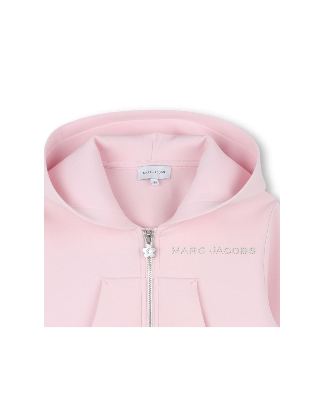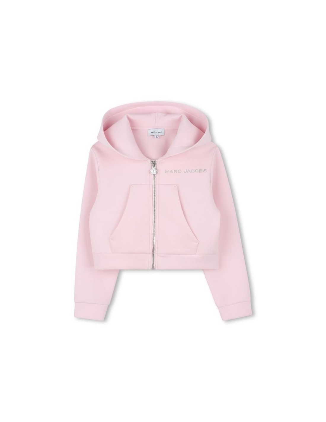 Descubra nosso cardigã com capuz, projetado para combinar conforto e estilo. O fecho com um delicado puxador em forma de margarida adiciona um toque divertido, enquanto a marca MARC JACOBS com strass no peito ilumina o look.