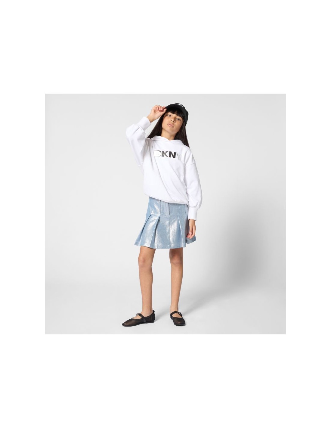 Desperte o estilo da fashionista lá de casa com esta saia jeans plissada prateada DKNY. Feita de algodão e elastano, traz conforto e estilo. A cintura ajustável adapta-se perfeitamente a todos os movimentos.