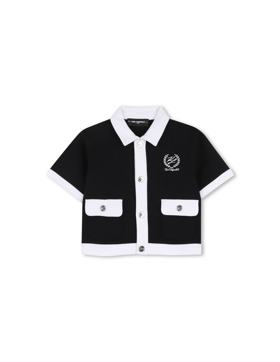 Deixe-se seduzir pela elegância desta jaqueta KARL LAGERFELD KIDS. Feito de malha dupla, combina conforto e estilo com listas contrastantes na gola e nas mangas. Os bolsos patch, adornados com botões com logo, adicionam um toque brincalhão.