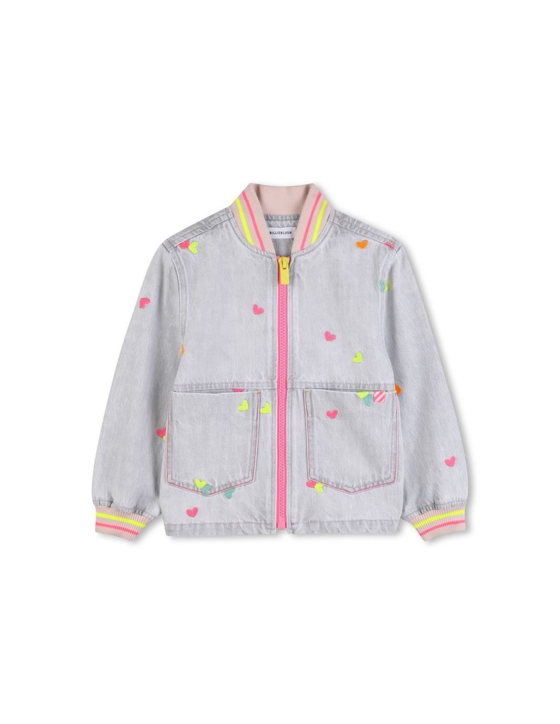 Esta casaca de ganga BILLIEBLUSH espalha um bom humor instantâneo. Os corações multicoloridos bordados estão por toda parte, enquanto os punhos canelados edão um toque desportivo e chique. Uma peça favorita para iluminar cada look.