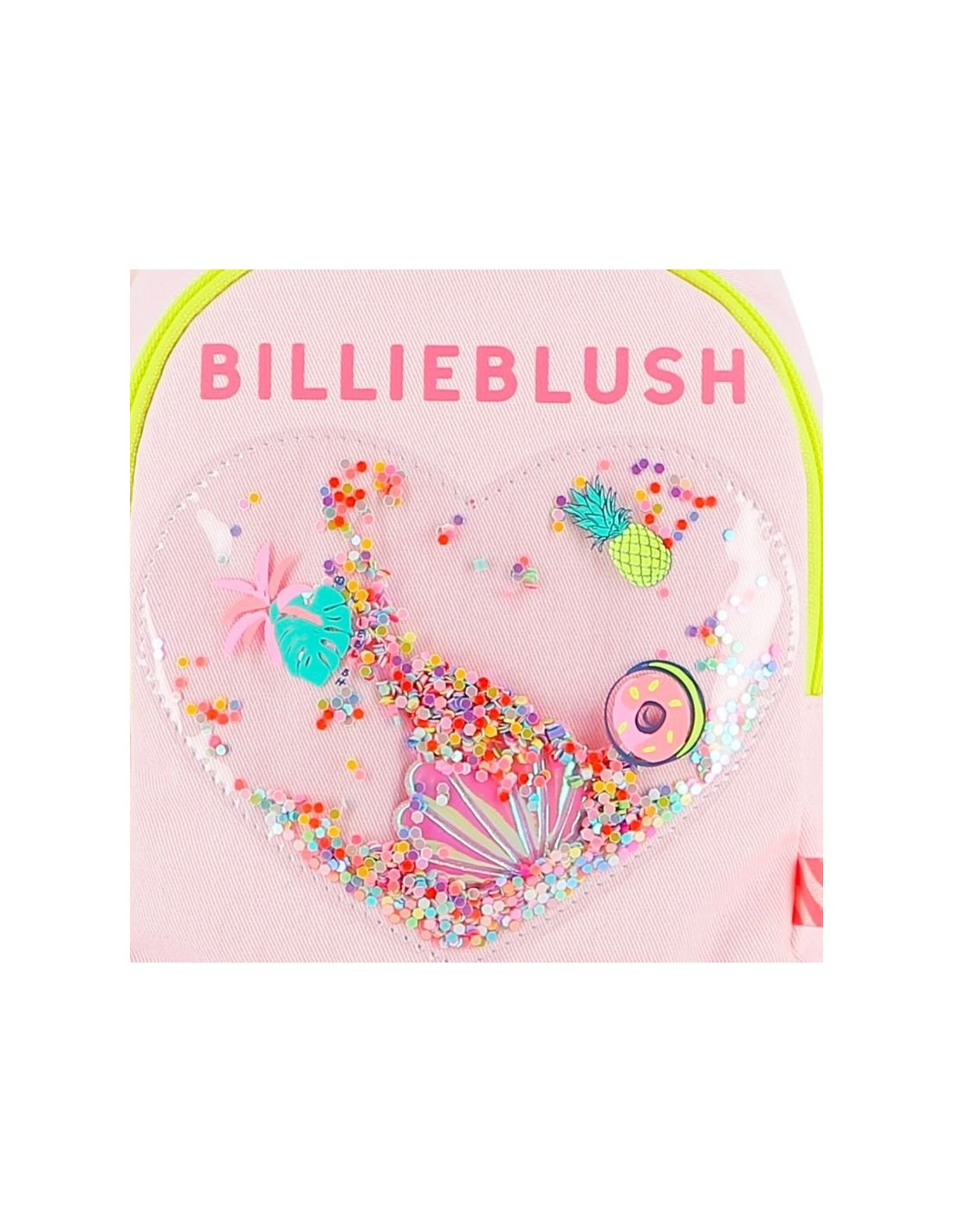 Esta mochila BILLIEBLUSH é uma companheira para as primeiras aventuras no jardim de infância. Feita de tecido macio, apresenta um coração translúcido cheio de confetis e emblemas elegantes.