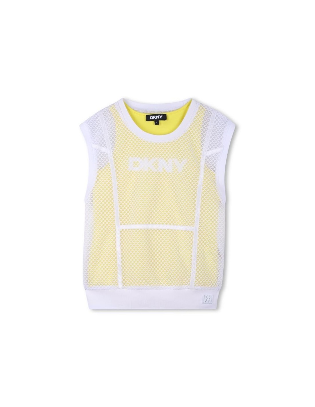 Leveza e estilo encontram-se nesta 2 em 1 DKNY. Feita de tricô aberto, esta blusa elegante combina conforto com um toque ousado graças à chapa metálica refinada. É perfeita para pequenas fashionistas em busca do outfit incrivel.