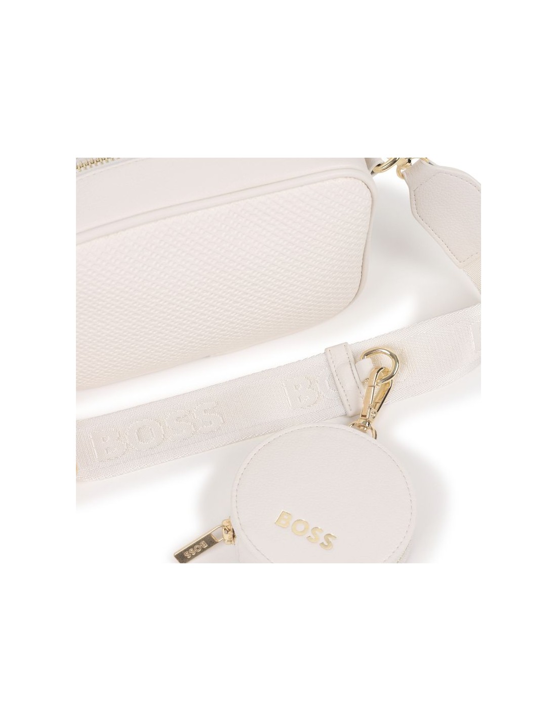 Adicione um toque de elegância ao dia a dia com esta adorável mala BOSS. Apresenta uma ilustração monogramada em relevo que vai seduzir pequenas fashionistas em ascensão. A bolsa de moedas a combinar, trará uma harmonia ao visual.