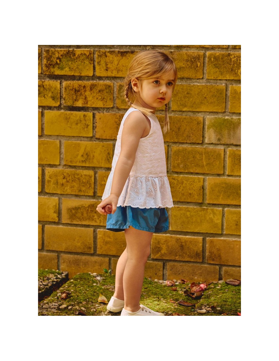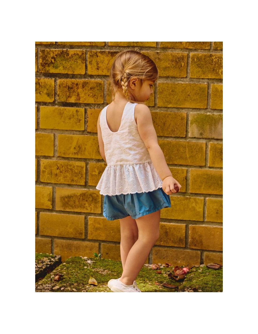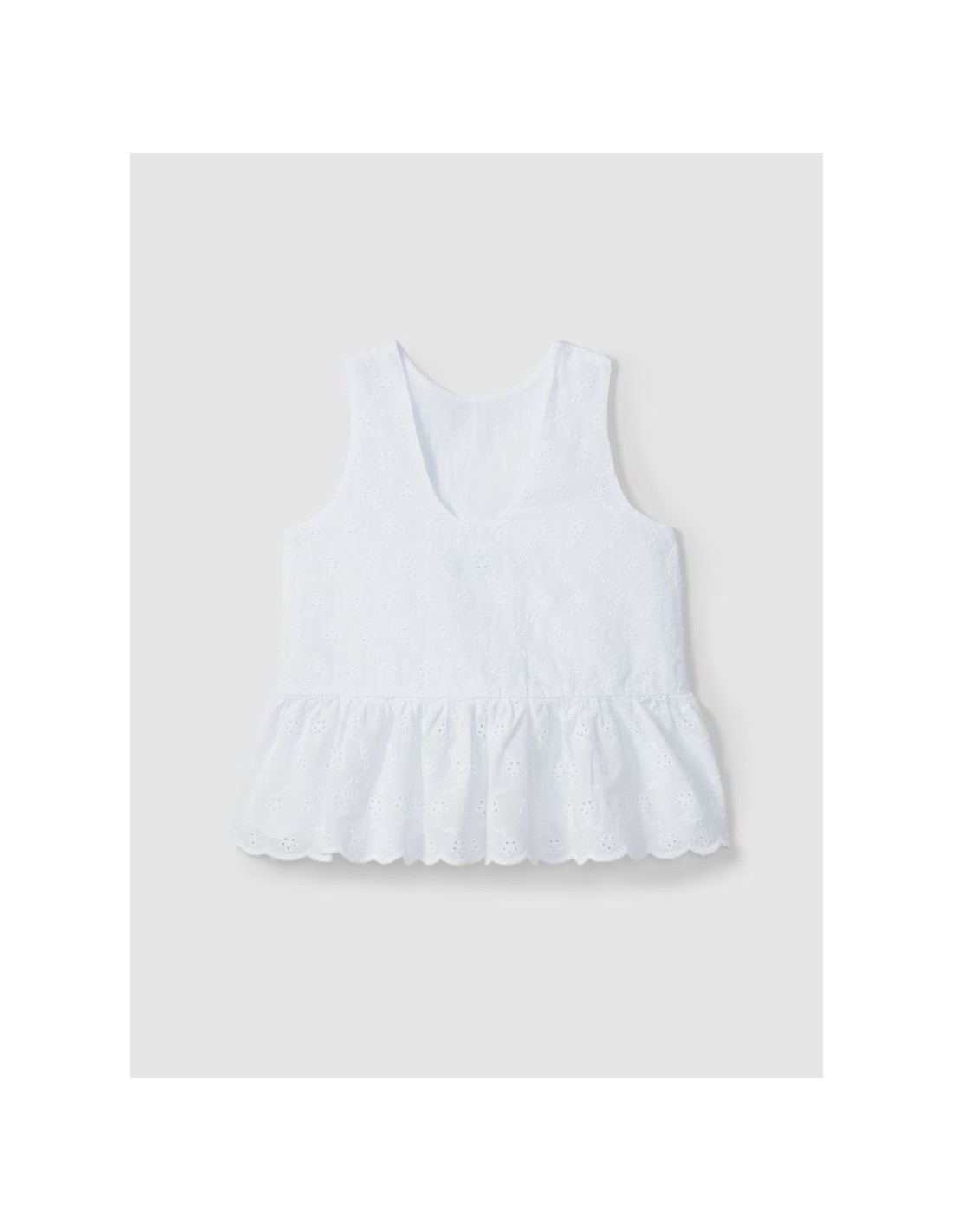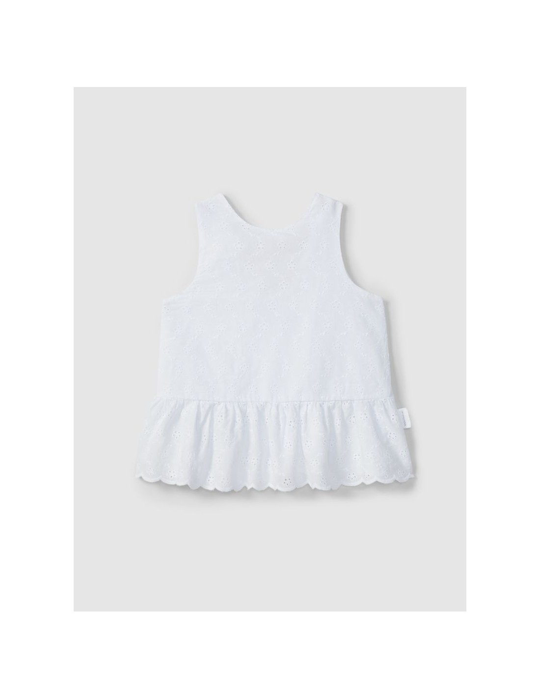 Top em tecido 100% algodão em bordado inglês. Detalhe de costas abertas.