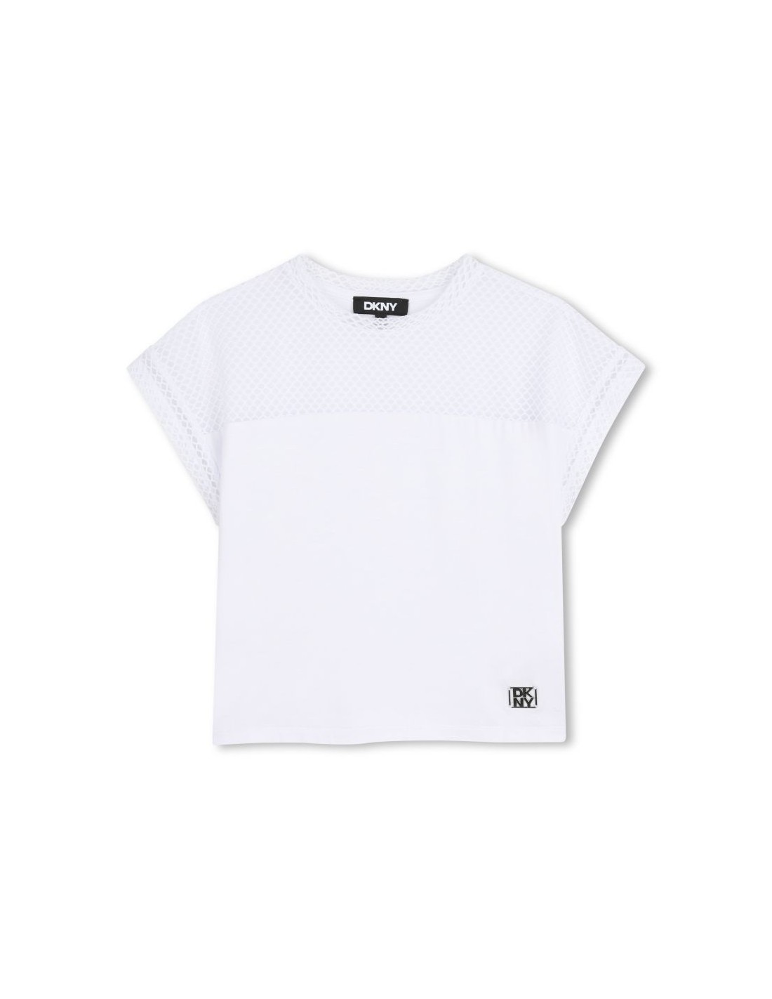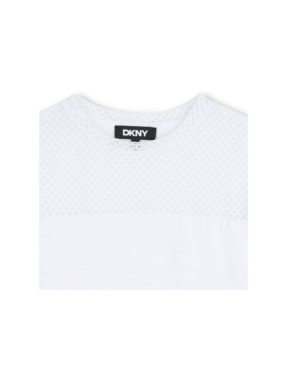 Desperte o estilo cool com esta t-shirt DKNY, projetada para combinar conforto e originalidade. Adapta-se perfeitamente a todos os movimentos. A rede de malha aberta dá um toque moderno, enquanto a placa metálica traz elegancia.