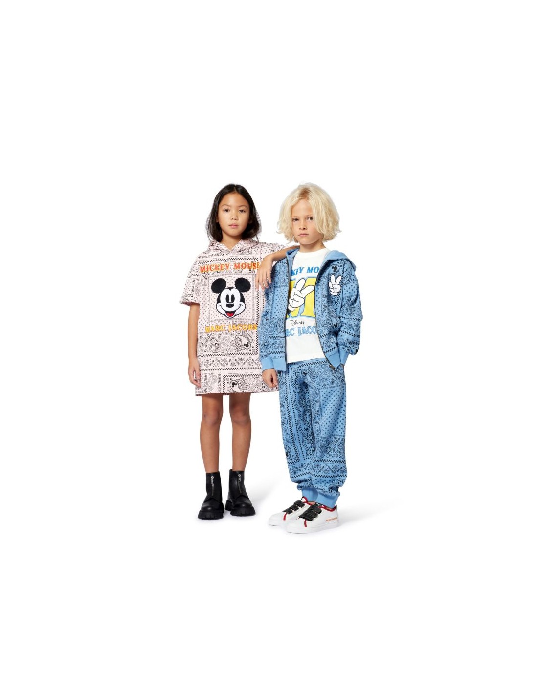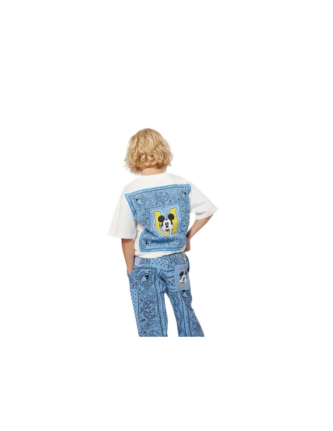 Confortáveis e estilosas, estas calças fruto da colaboração com a Disney, distinguem-se pela estampa "bandana" por toda a peça e pelas ilustrações do MICKEY MOUSE e da marca no bolso traseiro. Perfeita para crianças que gostam de originalidade.
