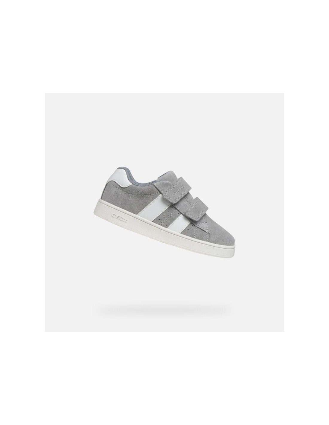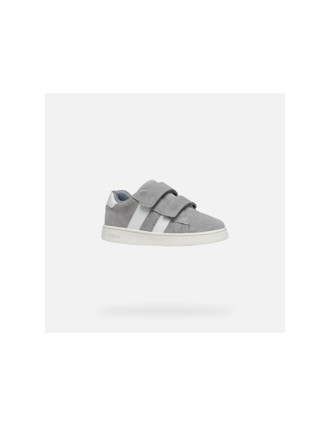 Sneaker júnior com prático fecho de velcro. Em cinza, com detalhes brancos, completa os looks do dia a dia, na escola ou nos tempos livres. Fabricado em camurça e material com efeito pele, é um modelo unisexo,para um look casual impecável.
