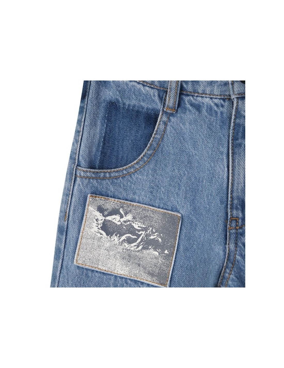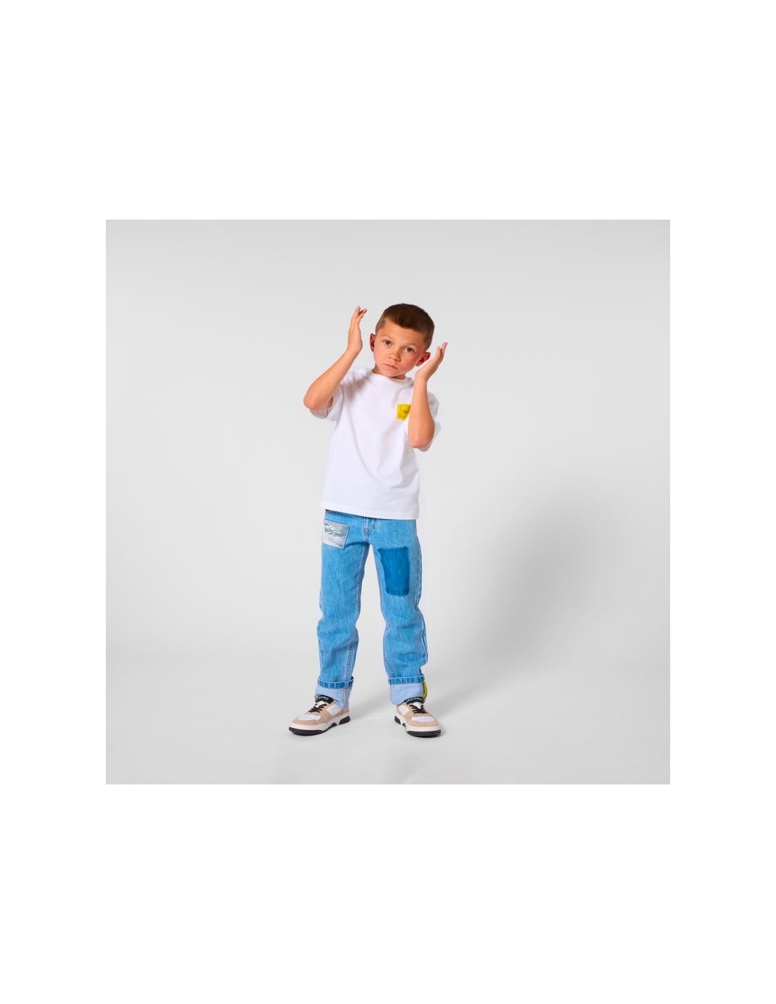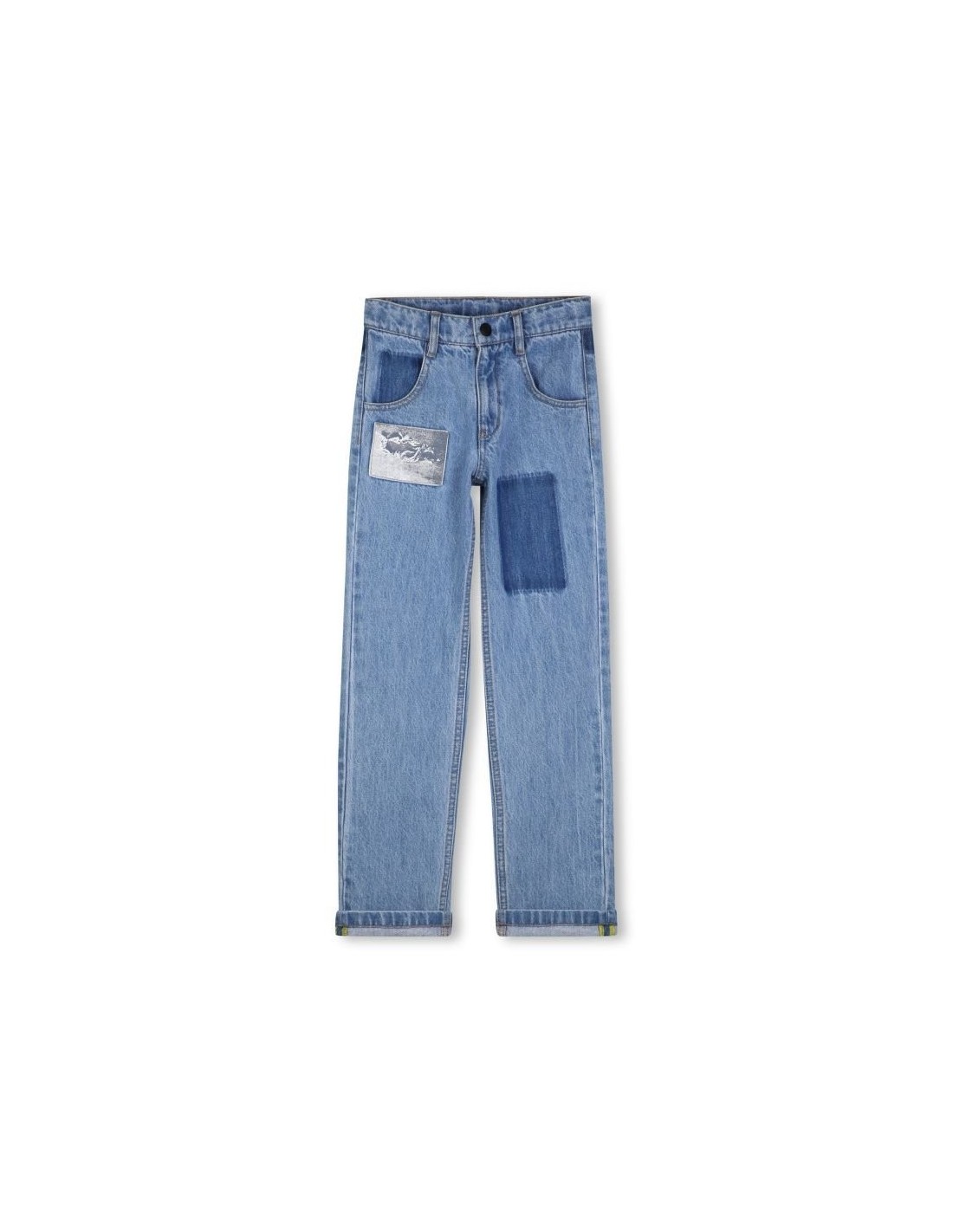 Explore o mundo jeans com as calças infantis MARC JACOBS, projetadas para fazer a originalidade brilhar. Os bolsos práticos na frente e patches trompe l'oeil, dão um toque único a cada look. A icônica costura "M" adiciona detalhe que faz a diferença
