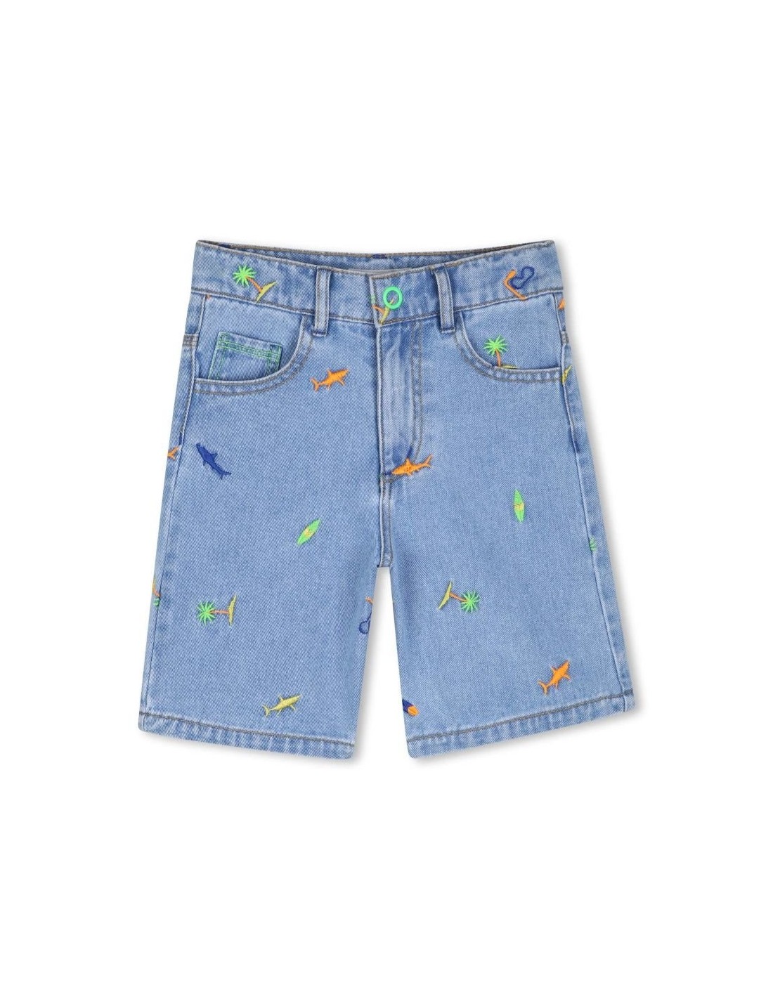 Mergulhe no mundo colorido BILLIEBLUSH com estes calçoes com de tubaroes bordados por toda a superfície. A cintura ajustável e o ajuste confortável fazem dele um essencial para o dia a dia. Um modelo cheio de personalidade.