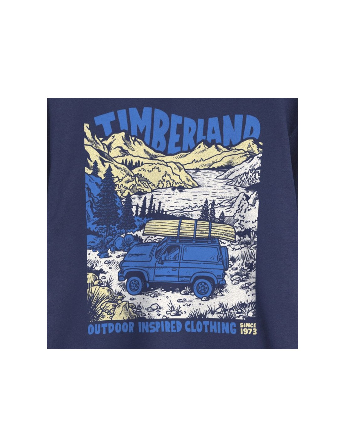 Mergulhe no mundo TIMBERLAND com esta t-shirt, que contém algodão cultivado organicamente. Macia, garante conforto ideal para todas as aventuras. A ilustração na frente chama atenção e reflete um estilo casual.