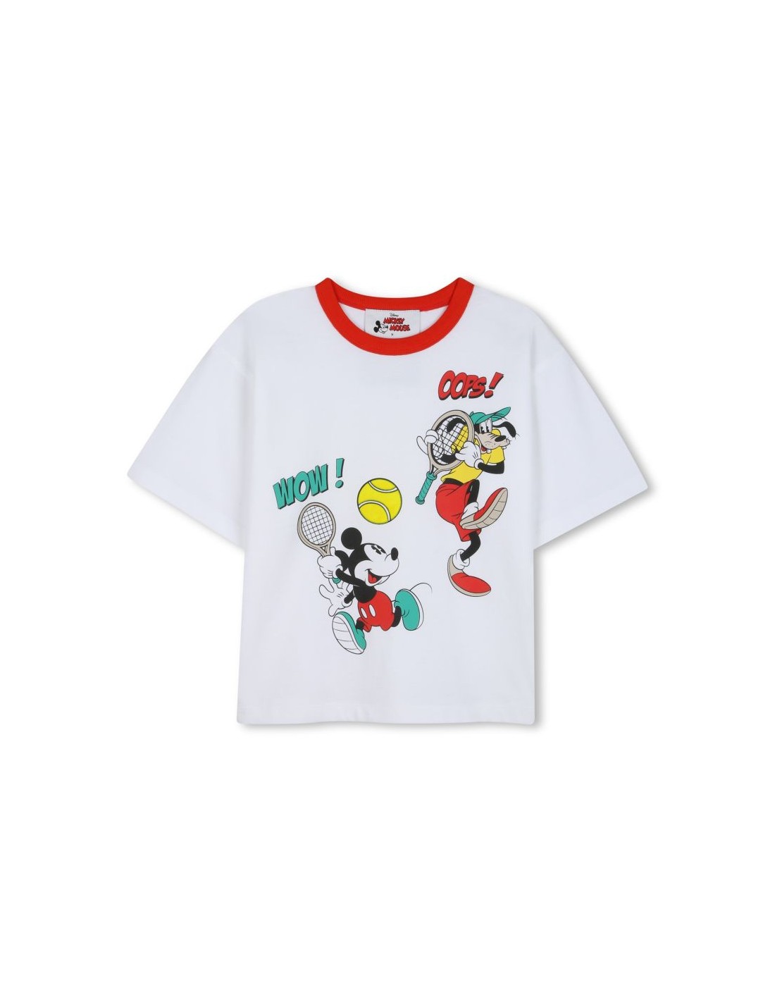 Mergulhe no mundo mágico da Disney com esta t-shirt, onde o Mickey e o Pateta jogam ténis! A gola contrastante adiciona um toque moderno, enquanto o rótulo de tecido MICKEY MOUSE x MARC JACOBS nas costas revela um estilo único.